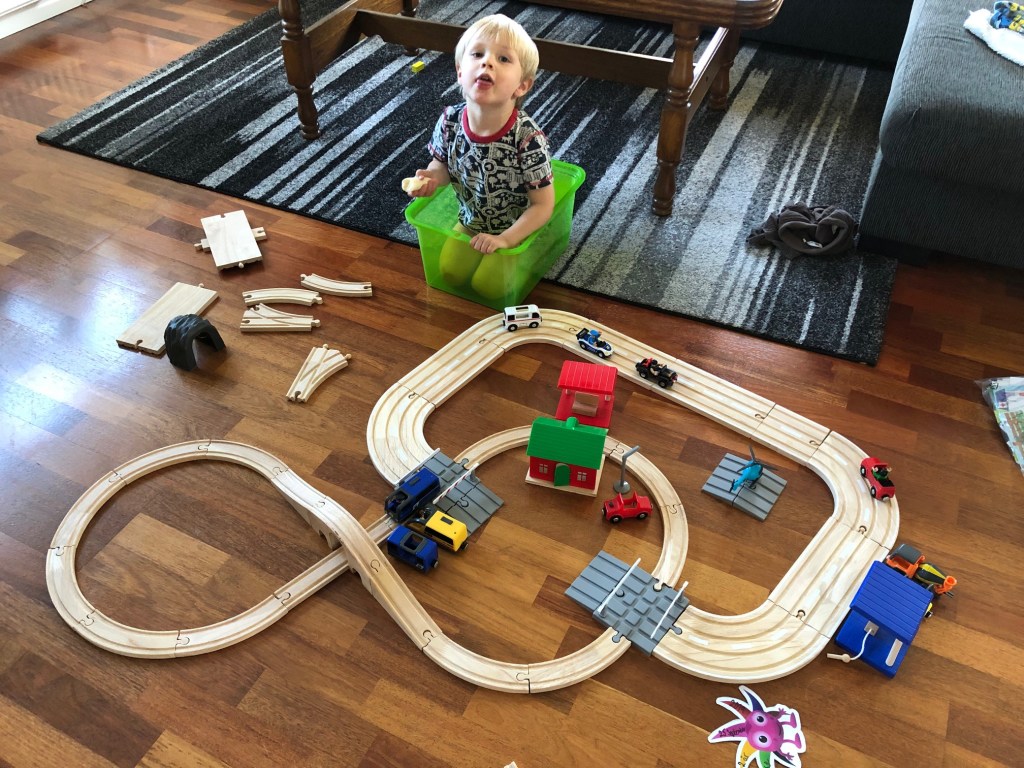 Jag gjorde som sagt inte många knop igår, det blev lite bajs mockat medan Loke sov och så tog vi hand om tvätten ”tillsammans”. Byggde med tågbanan gjorde vi också, favoriten just nu! Lite stolt över detta bygget, fint va!?