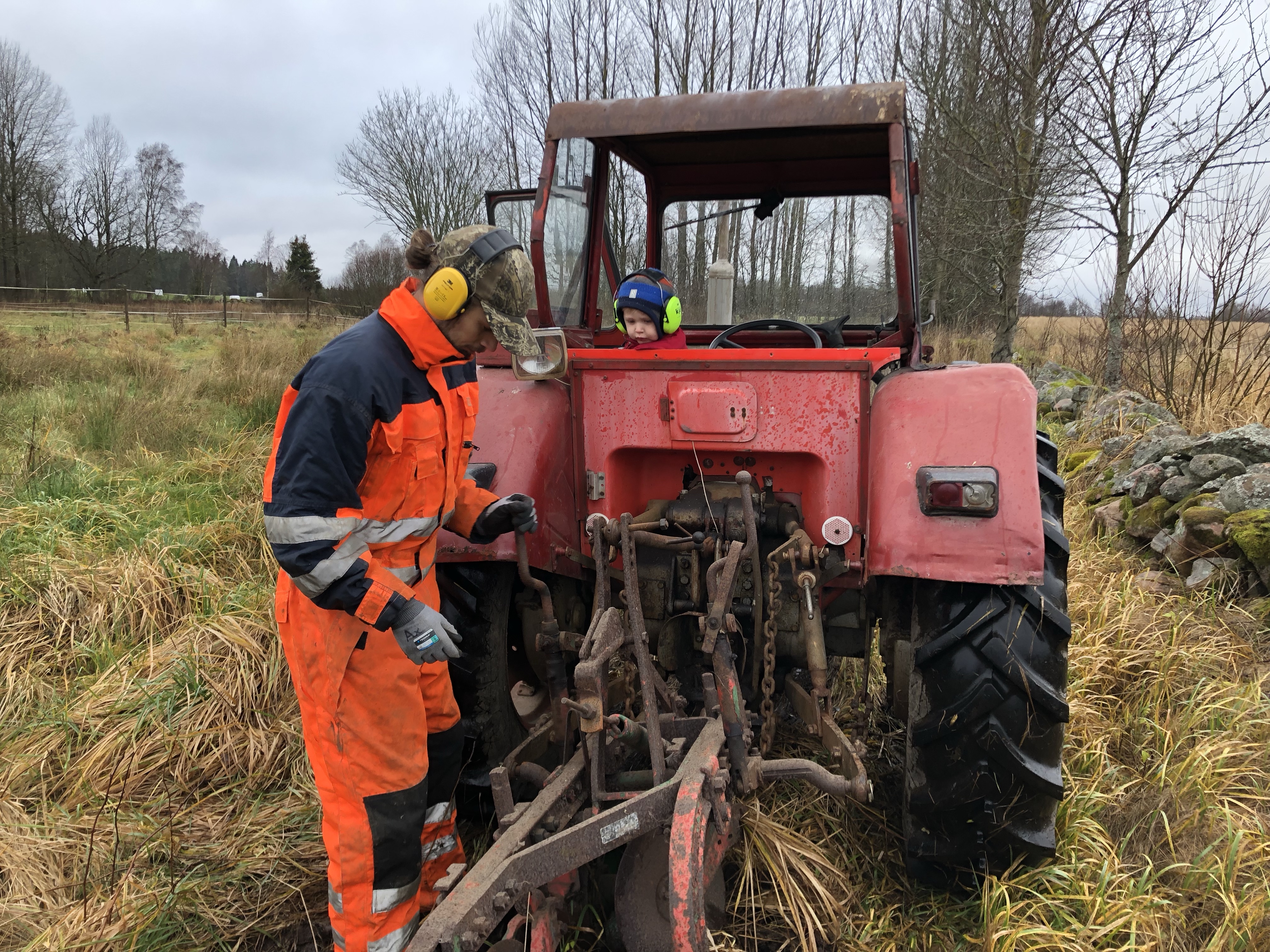 ”Alla” bönder i trakten har plöjt diverse åkrar nu så vi tänkte att det måste ju vara rätt tillfälle! Eller inte. Vi hann knappt börja innan traktorn plöjde ner sig själv, hehe. Axel fick lägga nån timme på att få loss traktorn, men det gick till slut! Får ge det ett nytt försök när det är lite torrare i marken.