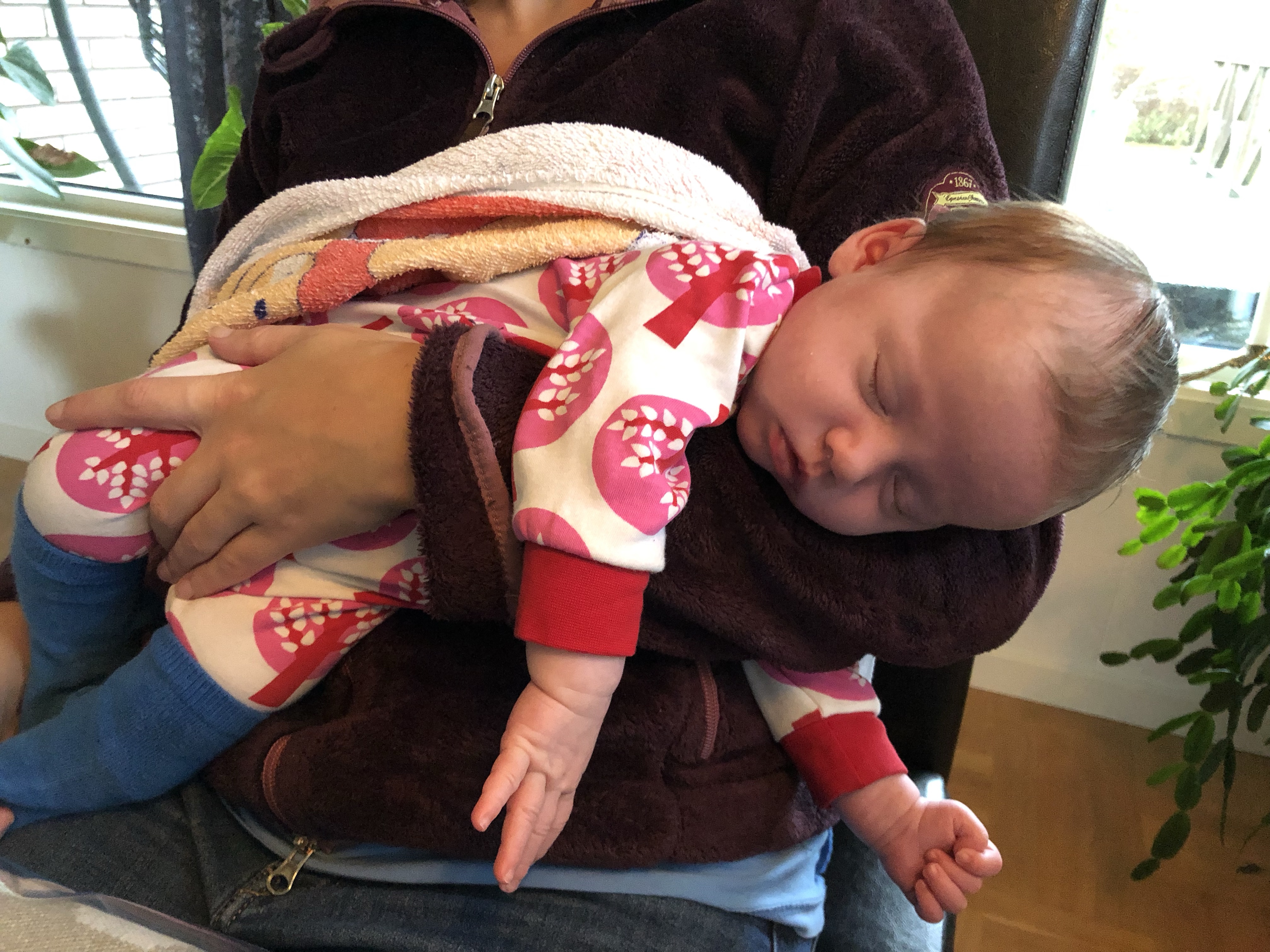 Och lite träning för Nora som blir starkare för varje dag, trots att hon mest sover fortfarande!