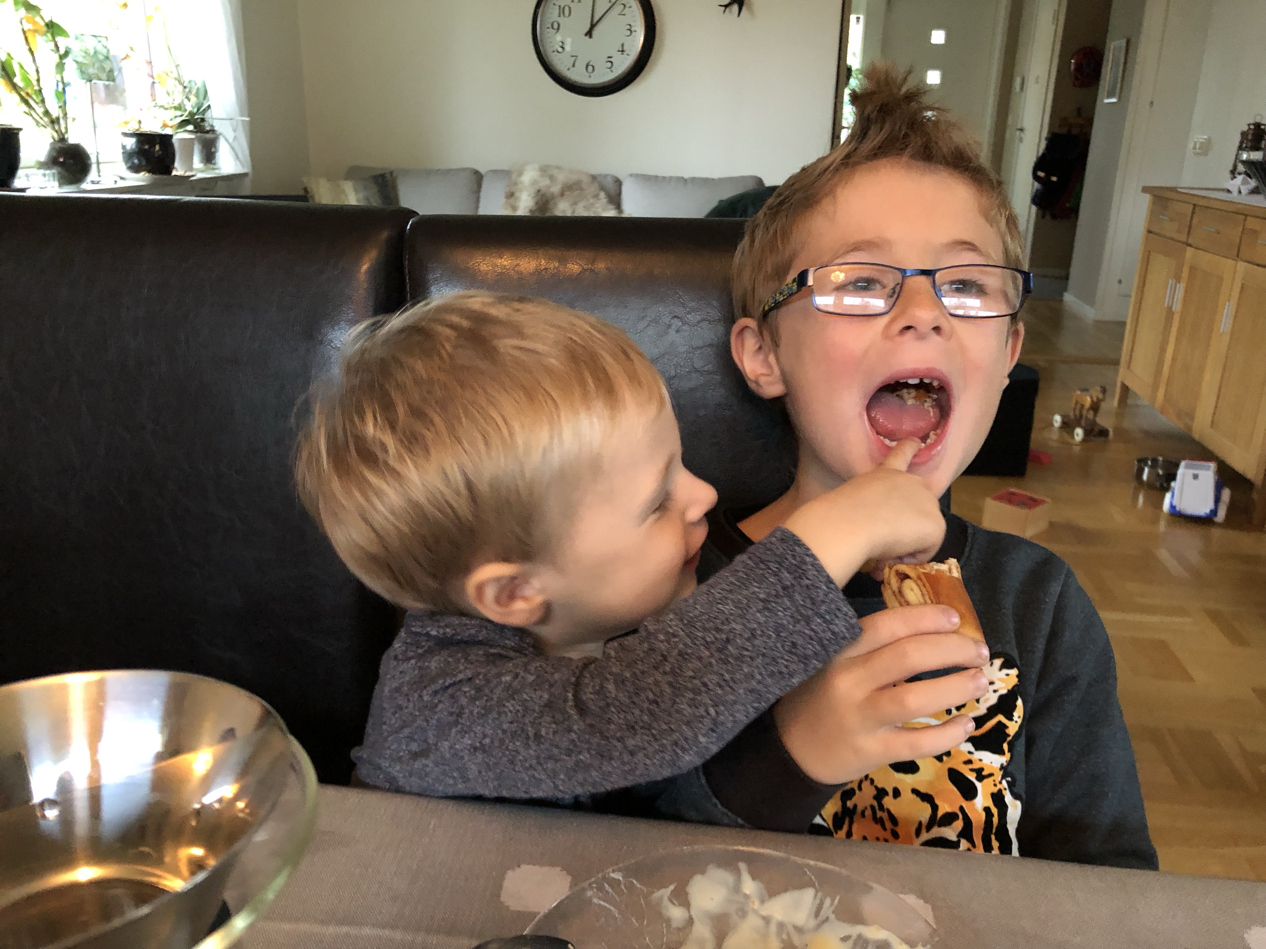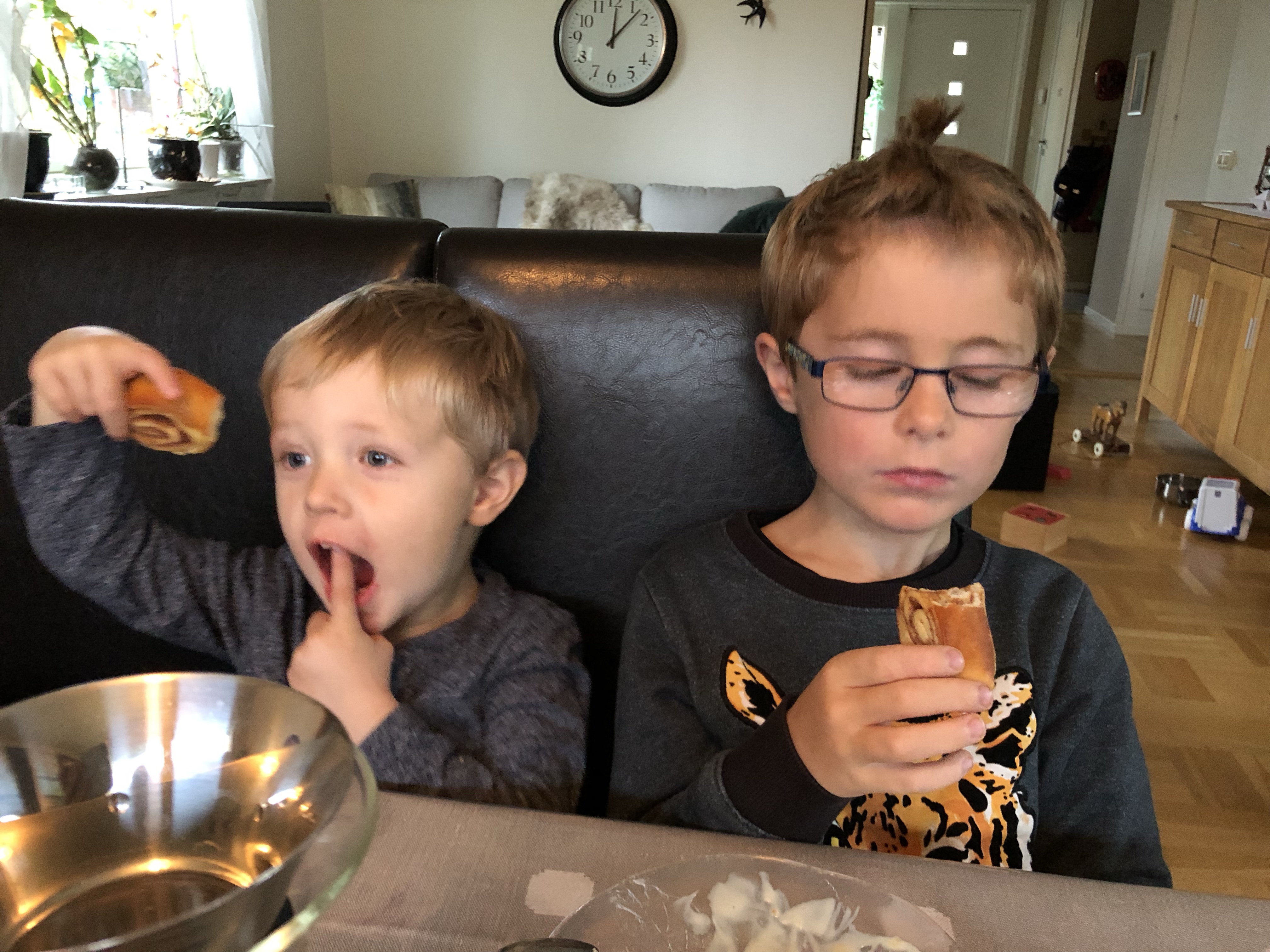 När Loke vaknat åt vi lite frukt och tog det lugnt en stund. Nora sov en stund i nestet också så kunde jag förbereda kvällens middag. Köttfärssås som gärna fick stå och puttra en stund.