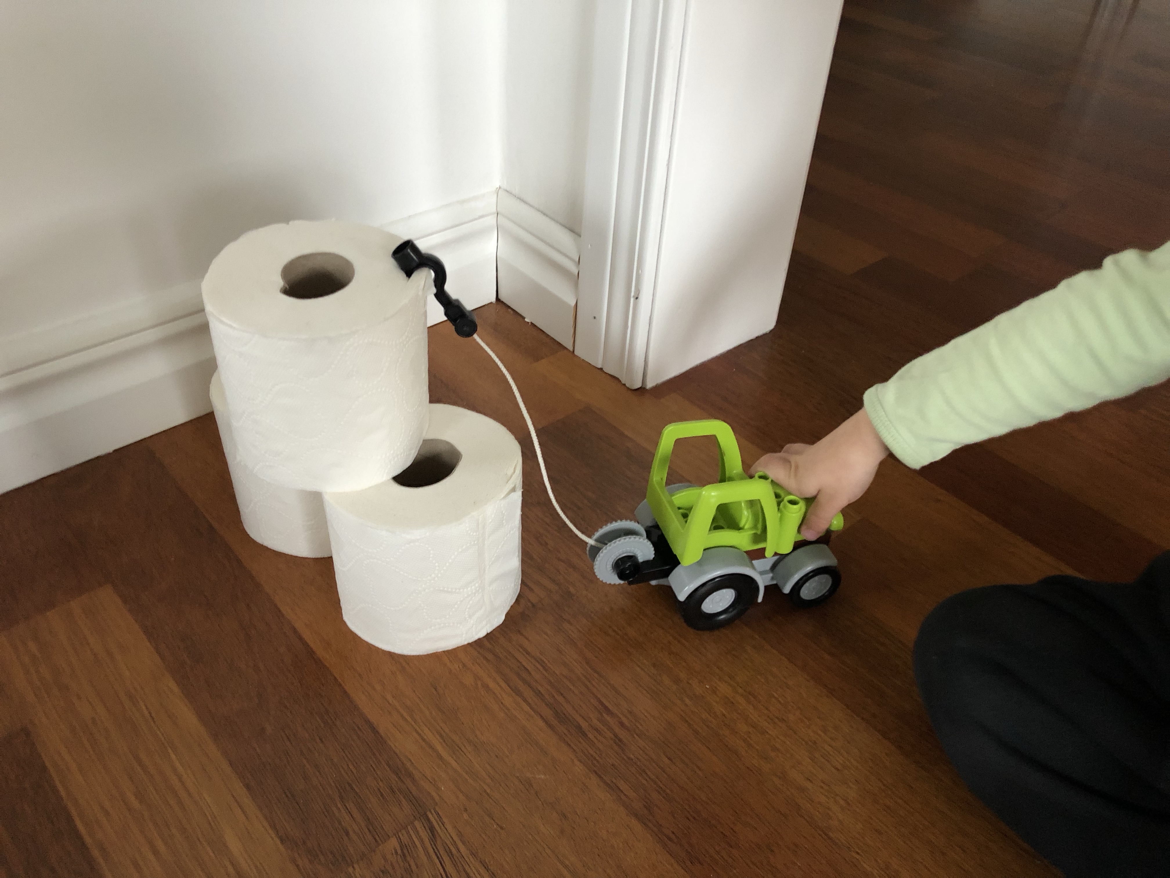 Idag har Loke varit helt feberfri och pigg och glad som vanligt, om än lite hostig. Vi lekte lite inne under morgonen, båda barnen fick bada och när de torkat ordentligt gick vi ut för att göra morgonsysslorna. Inne-leken speglade helt klart hur gårdagen avslutades.