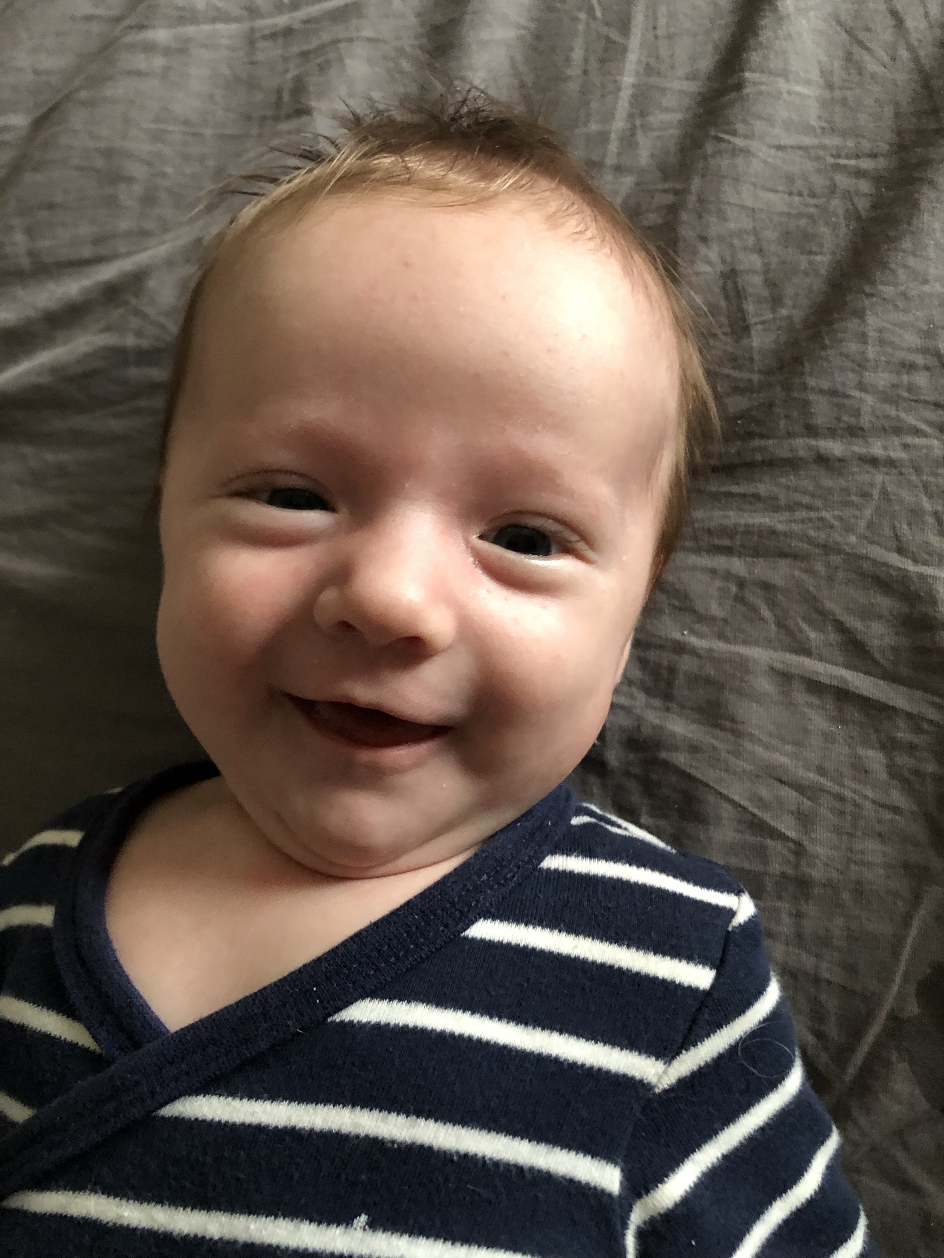 Men Nora var go och glad för det och passade på att träna på sitt leende. Käkar och växer gör hon också, sex veckor gammal idag!