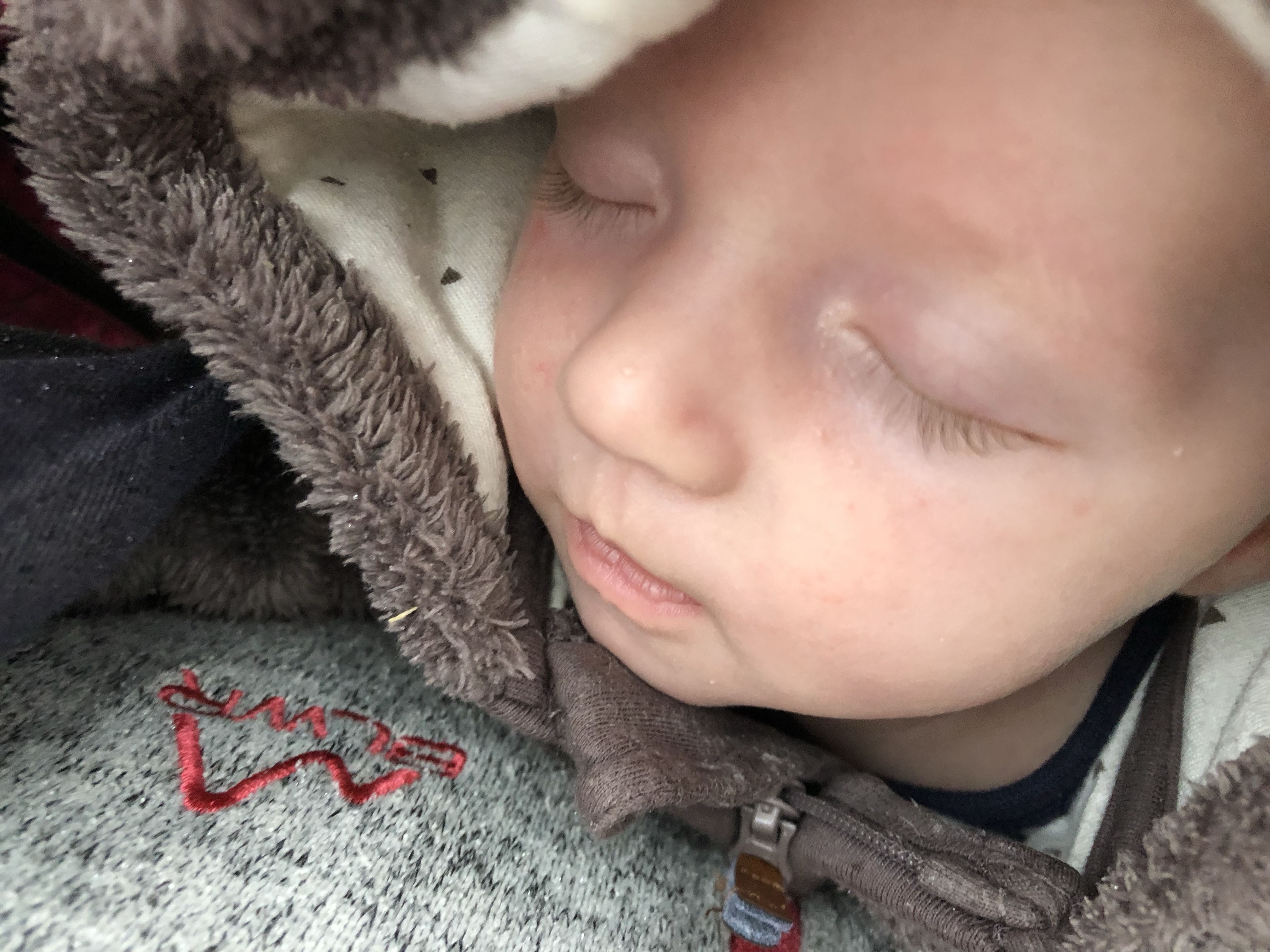 Ja ännu en ganska kass natt kan sättas på kontot men dagen har varit helt okej! Och Nora sov faktiskt non stop mellan typ 22 och 04 så guldstjärna till henne. Loke var lite ynklig där i mellan men tog igen några pluspoäng när han sen sov till halv nio. Skönt!! Han var då även rätt pigg och glad. Frukost följde och sen gick jag ut med Nora i sele och Loke till fots. Hönsen fick komma ut, fåren fick mat och Kaprifol blev ompysslad med borstning, mat med ”medicin” och täcke på inför det nya regnovädret som drog in.