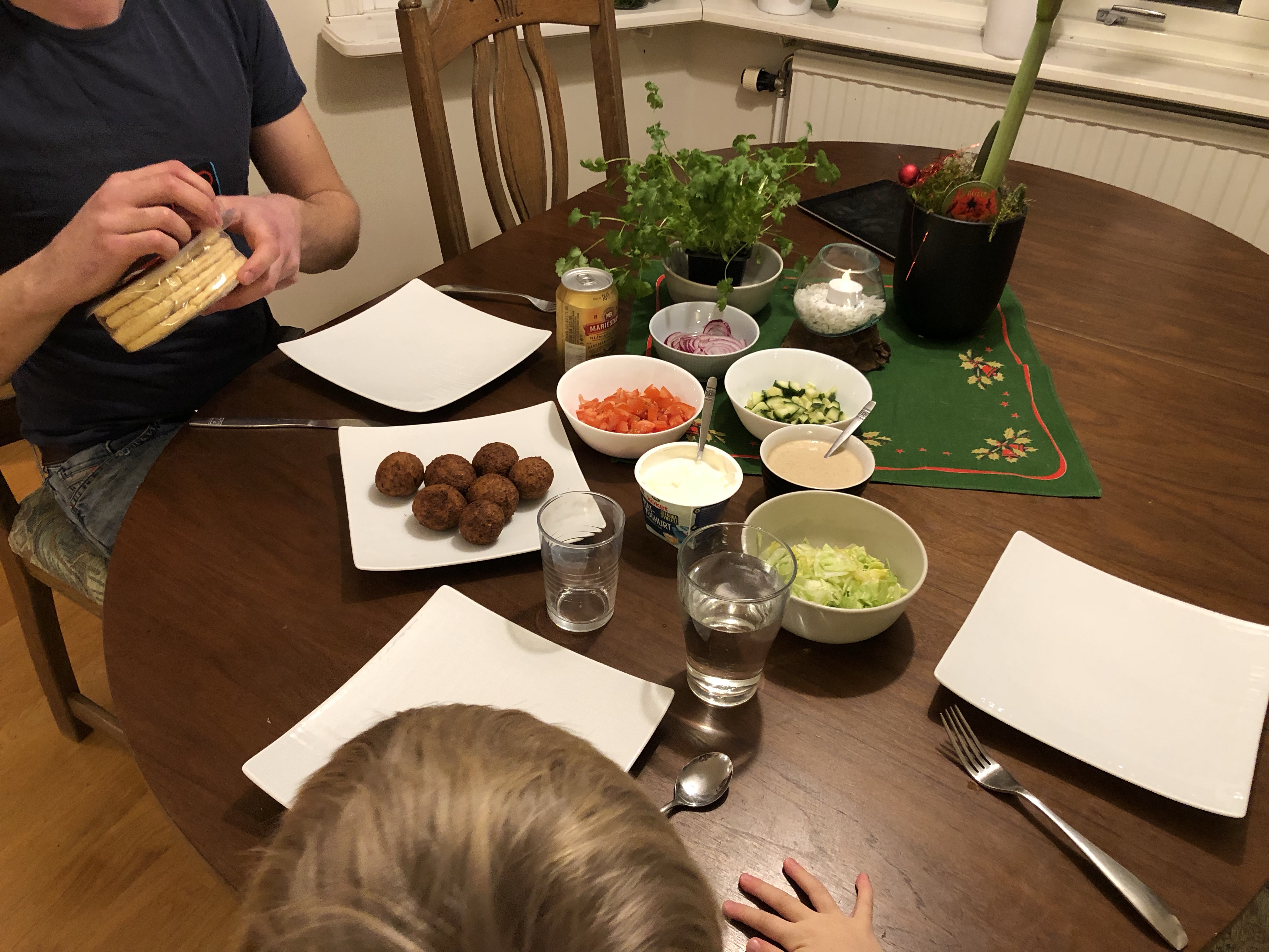 Under eftermiddagen fick vi kort besök av Axels faster bland annat och så åt vi falafel till middag.