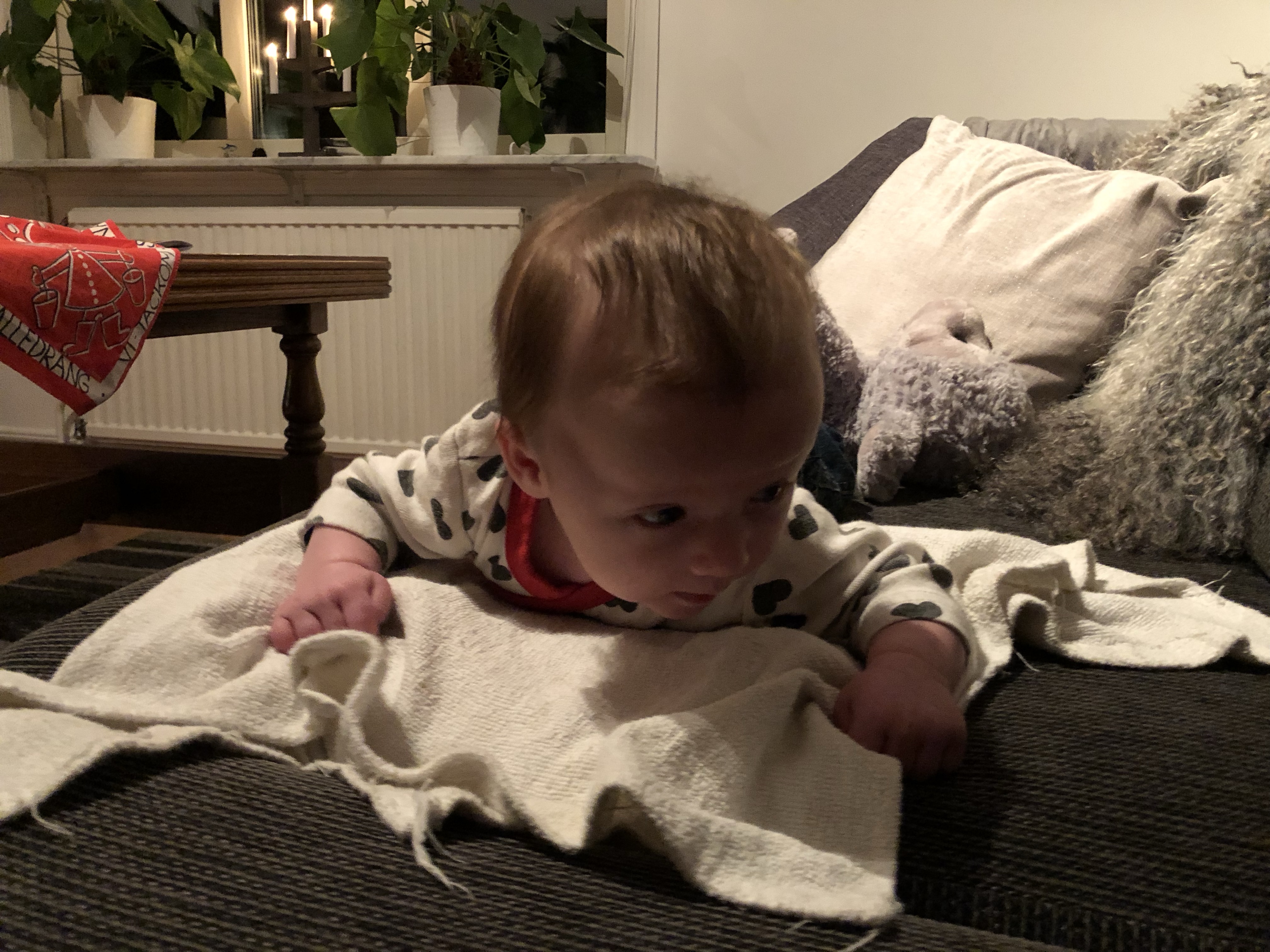 Loke hängde då på i lite hushållssysslor som var skönt att få gjorda; berget med tvätt togs om hand, huset blev röjt, adventsljusstakarna blev inventerade (en behöver nya lampor!). Vi hann även äta lunch innan Nora började röra på sig så då fick hon mat och sen gick vi ut på Lokes insomningsrunda. Till skillnad från igår somnade han snabbt så jag gick snart hem igen. Nora var pigg och glad och fick således lite ”egentid med mamma” medan Loke sov en timme.
