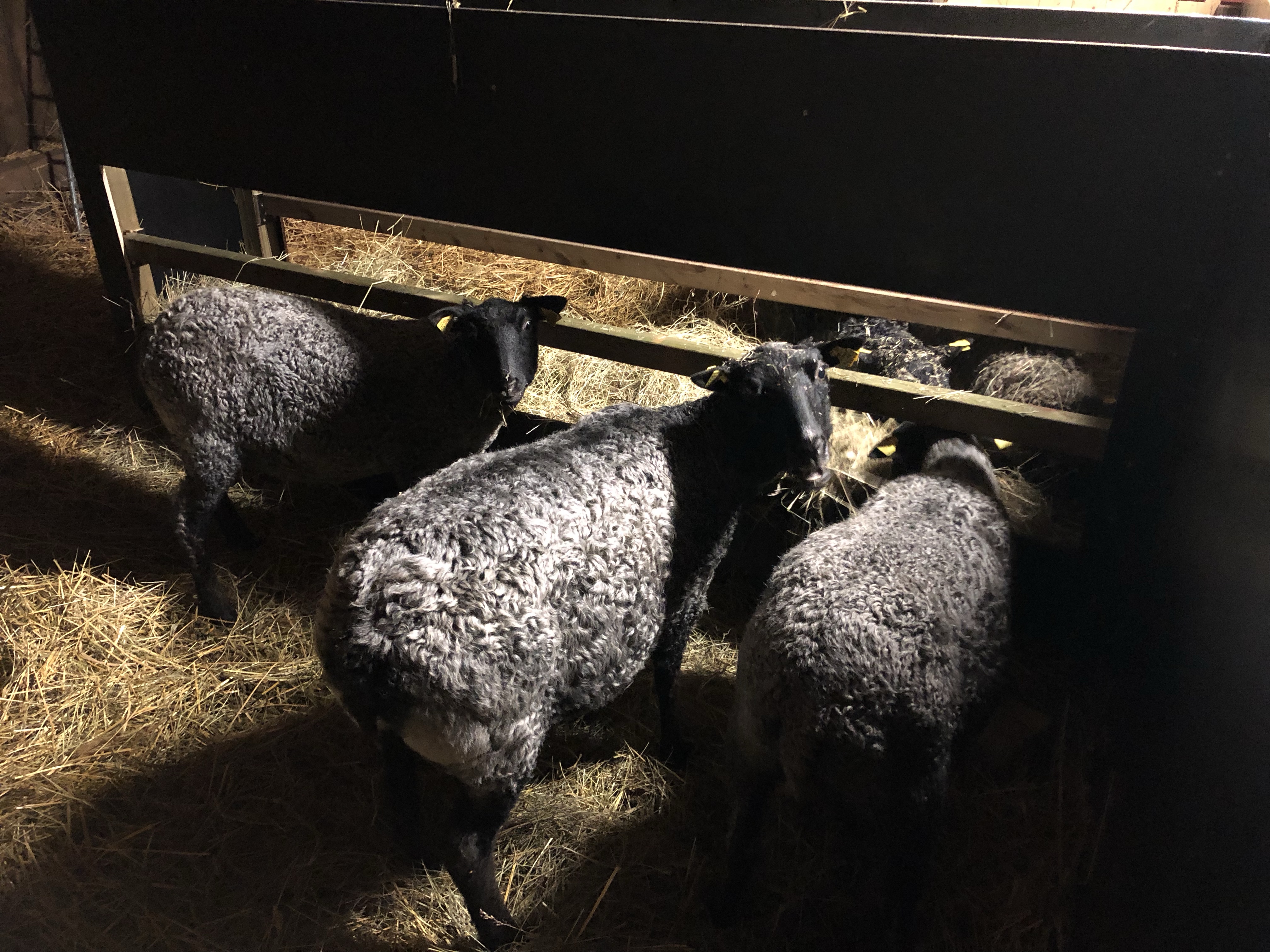 Igår hade vi El-Claesson på besök och vi fick in ljus i fårhuset! Kabel drogs från stallet och en lampa sattes in som man kan tända både från dörren från ladan och från den yttre porten. Några eluttag sattes också upp för exempelvis värmelampa, kameran och klippmaskin. Det är även förberett för att vi ska kunna flytta ut den lilla strålkastaren som vi fram tills nu lyst upp fårhuset med, till utsidan. Så kan den dels lysa upp över portarna om vi ska hämta får när det är mörkt, och så kan vi använda dem när vi kör höbalarna som ju står dör utanför.