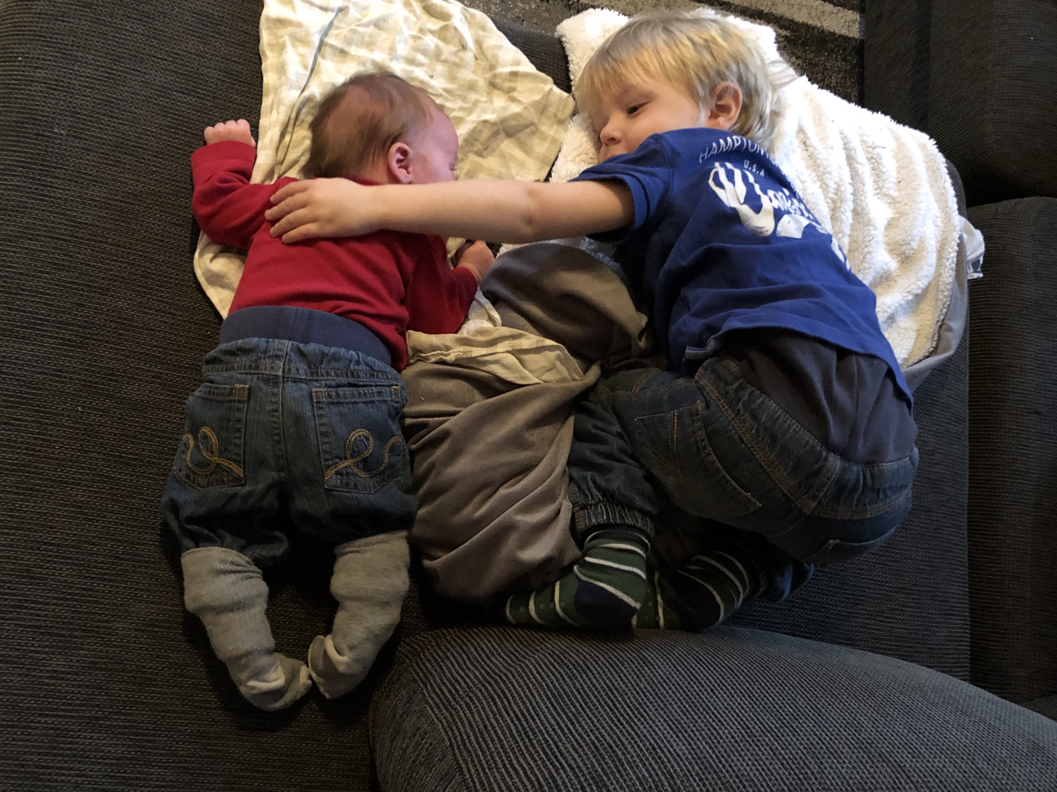 Nora sov gott i både morfars och mosters famn och lämnade spår efter sig av både kräk och bajs! Det sistnämnda bara på en handduk lyckligtvis.