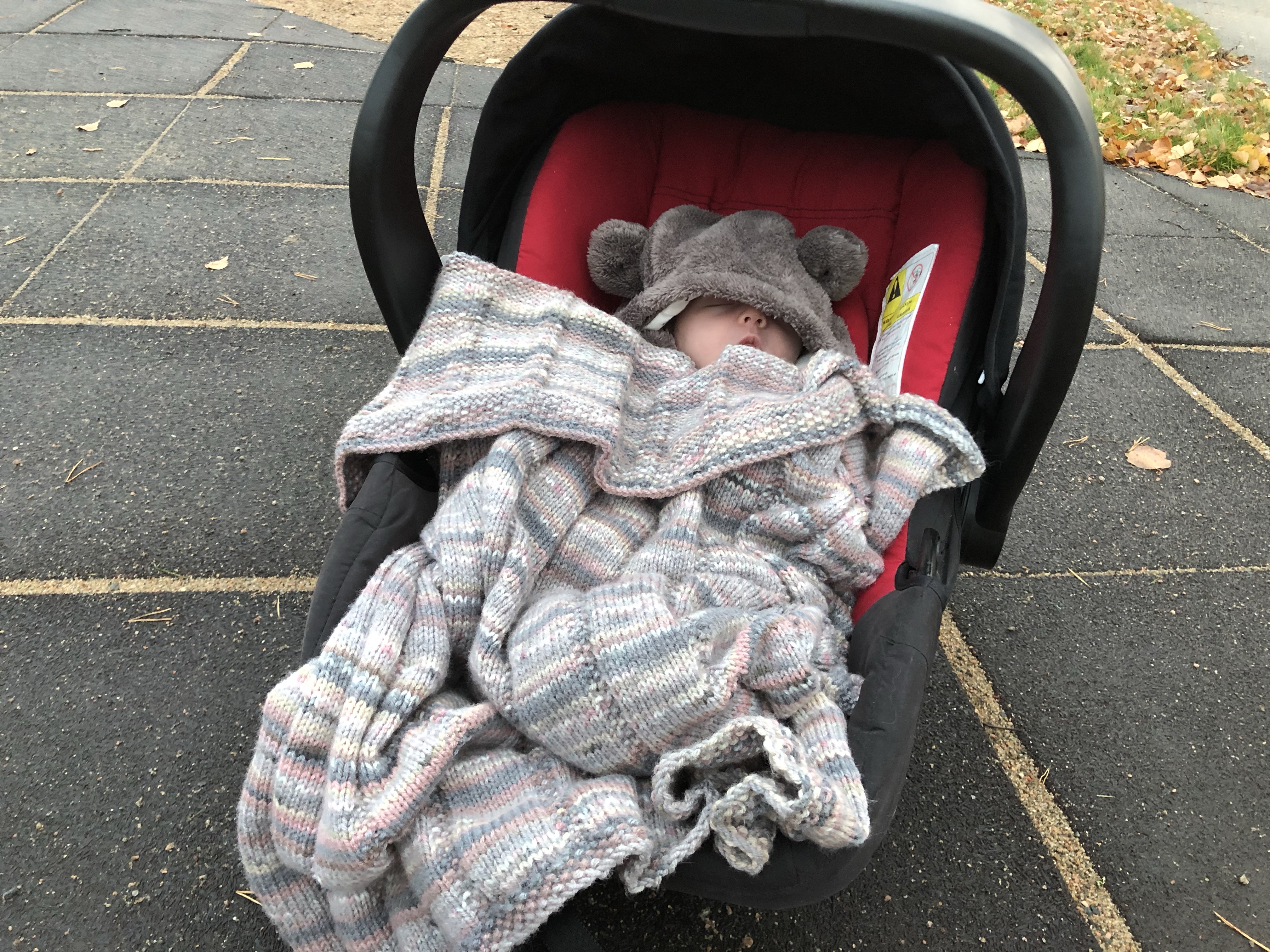 Nora sov gott inpackad babyskyddet medan Loke lekte.