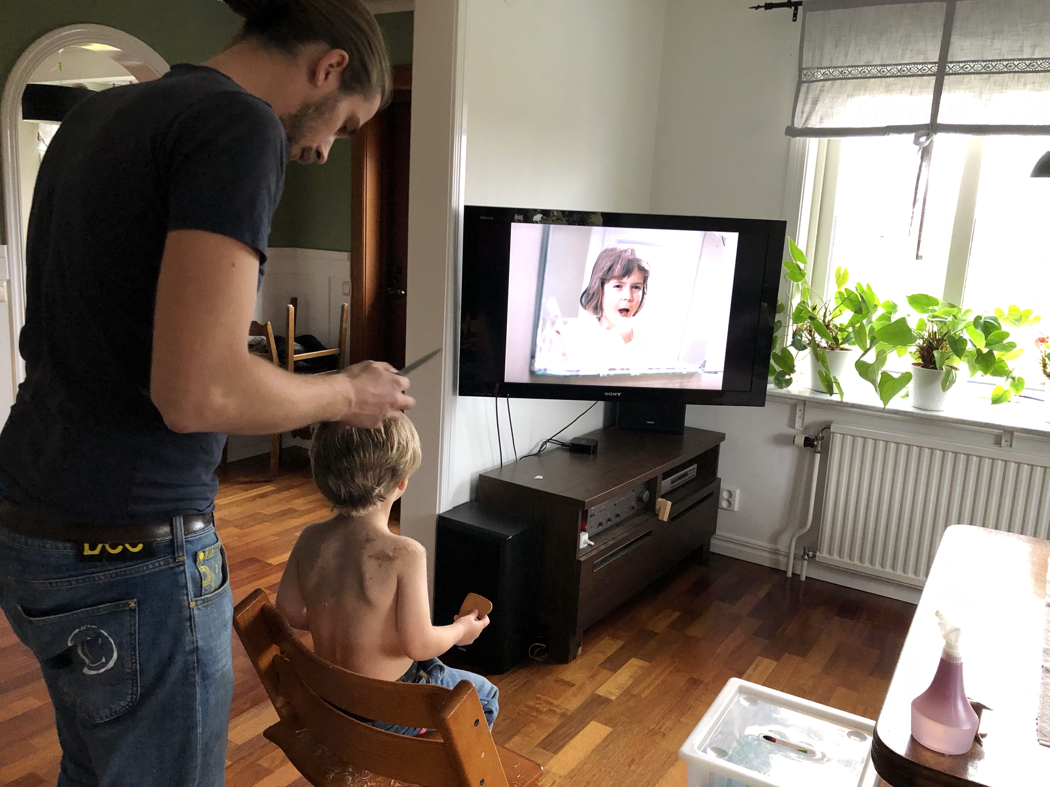 Och Loke fick en ny frisyr också! Det gick riktigt bra att klippa honom idag, med Pippi på tvn och en pepparkaka i handen.