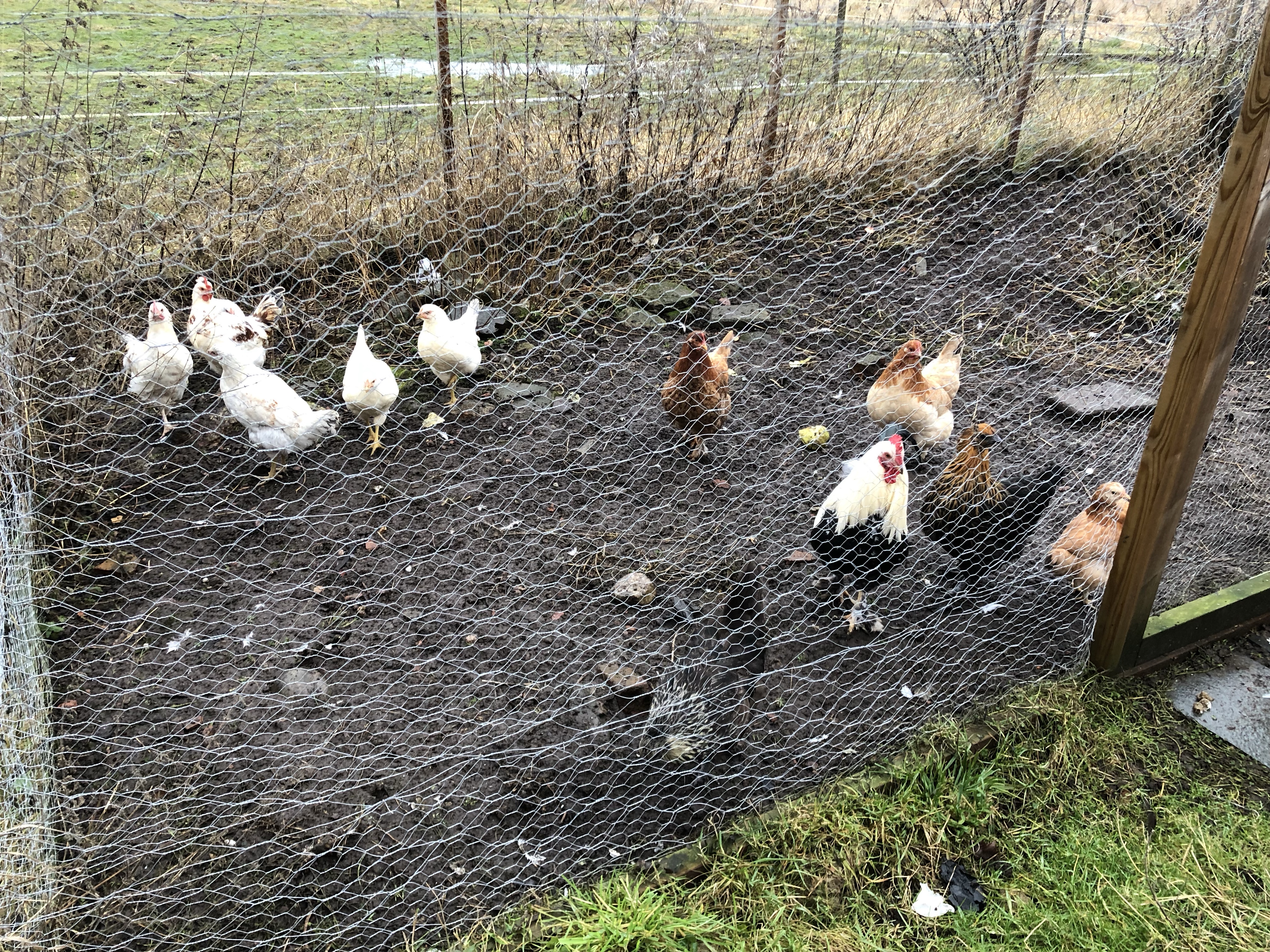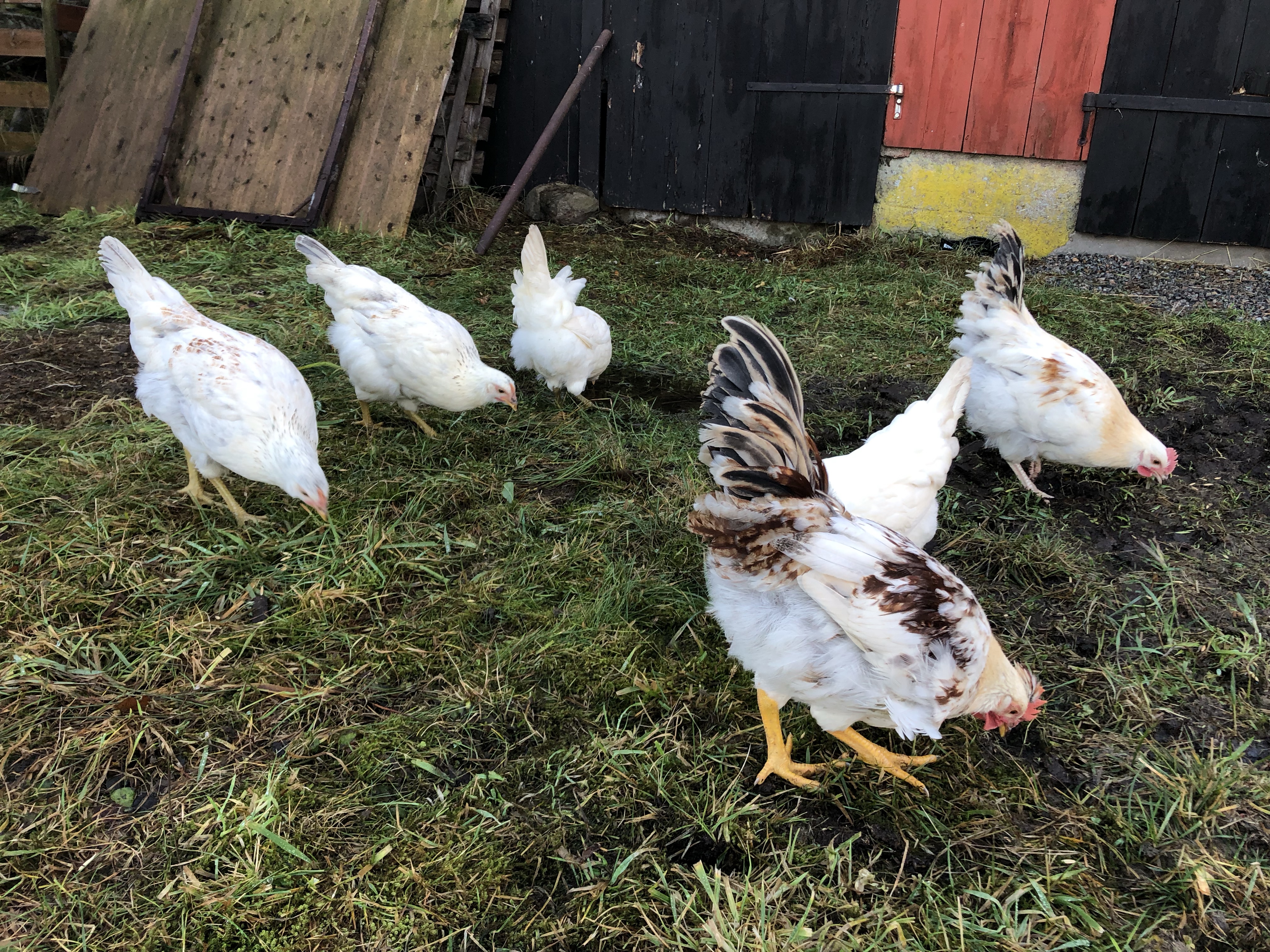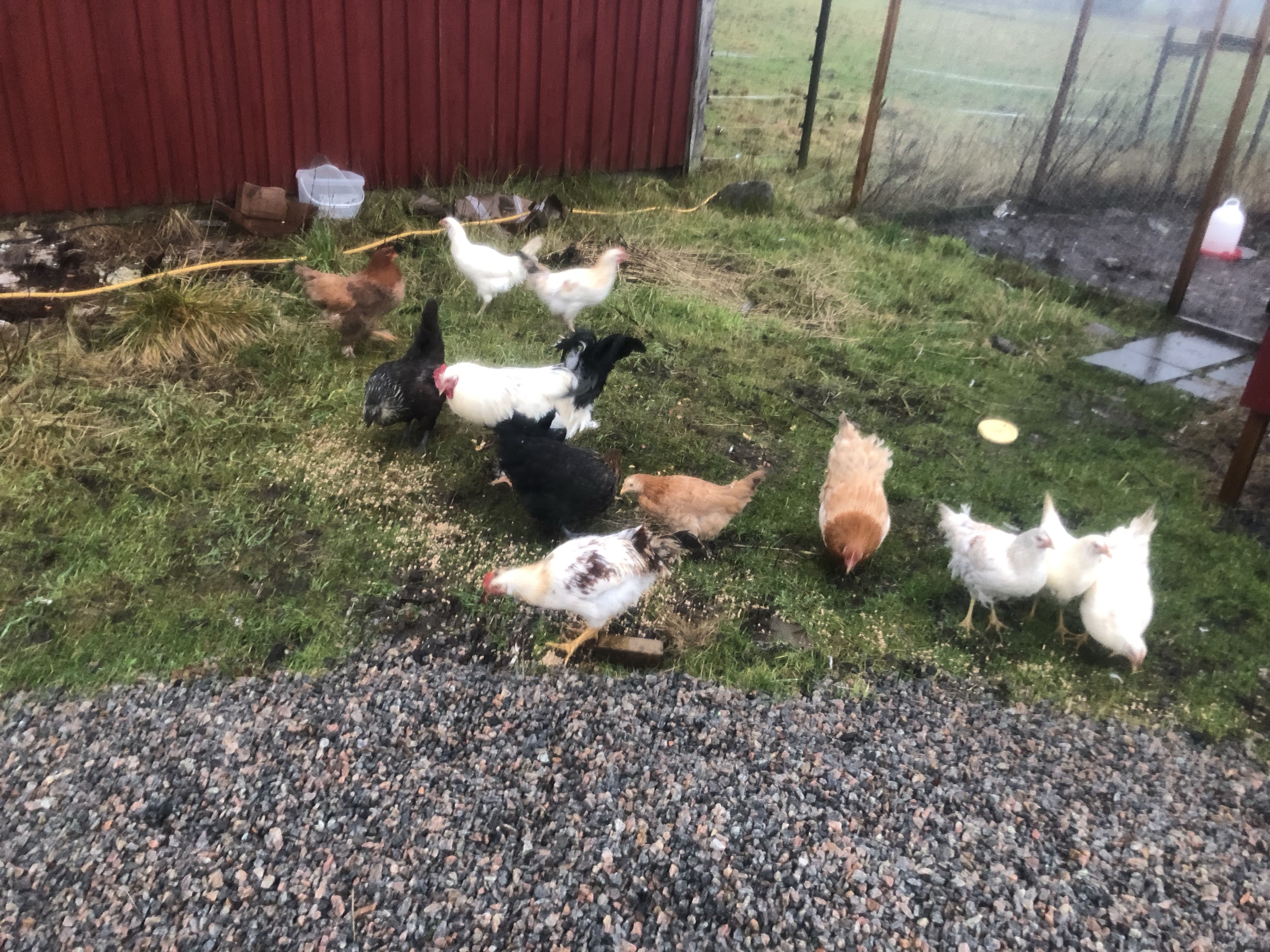 Tråkigt nog är det inte Hedemora-höns som vi har sen tidigare utan det är en blandras med mestadels Lohman i. Men de är ju fina de med! Det är fyra hönor och två tuppar så tupparna kommer hamna i grytan någon dag ganska snart vilket ger oss hela NIO hönor och en tupp i slutändan. Lite fler än vad vi egentligen ”vill ha/behöver”, men lite svinn får man ju räkna med har vi märkt under tidens gång…