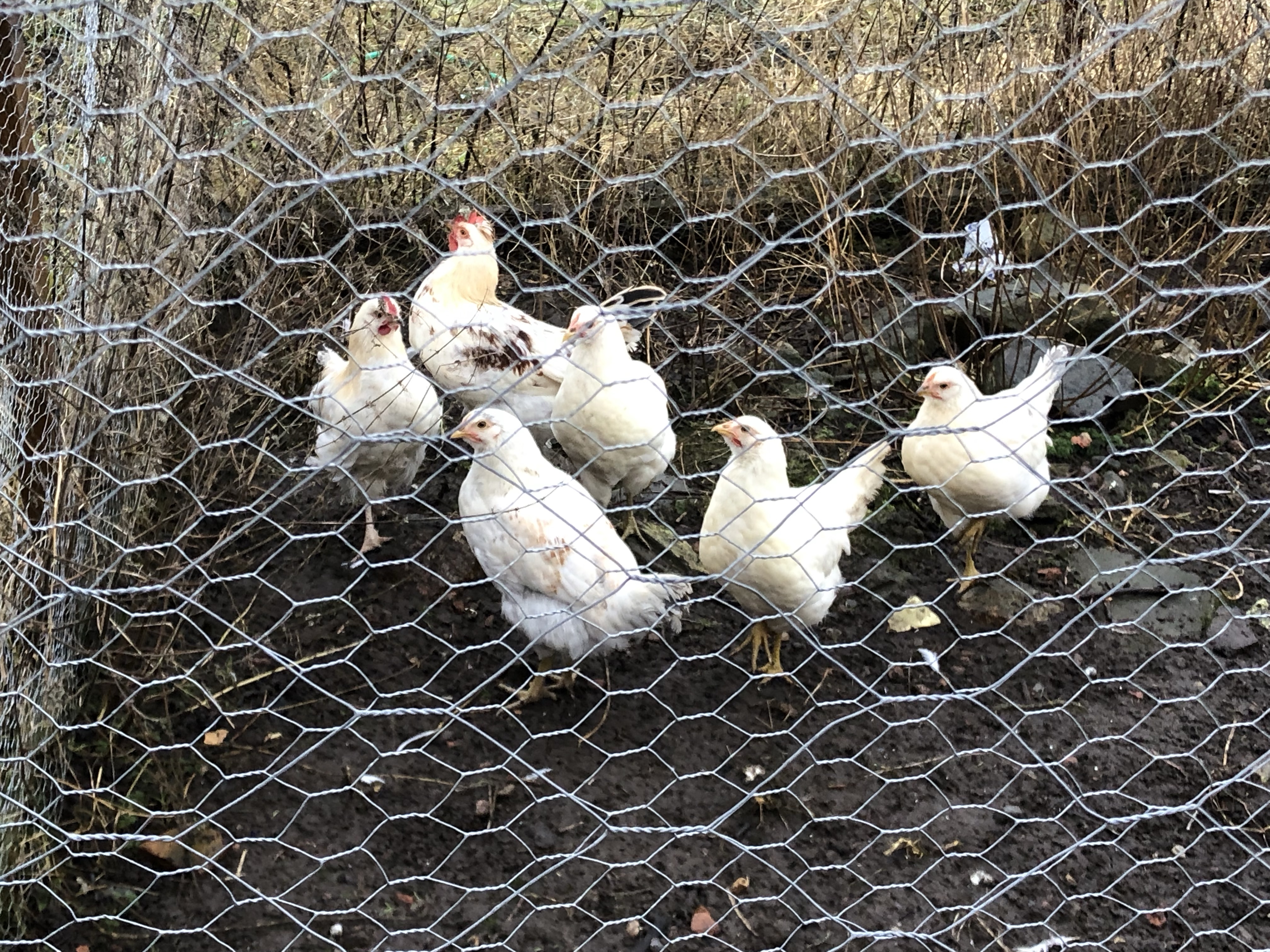 De stoppades in i hönshuset på kvällen och dörren ut från hönsgården har fått vara stängd ett par dagar så de fick göra sig hemmastadda. Och träffa de befintliga sex!