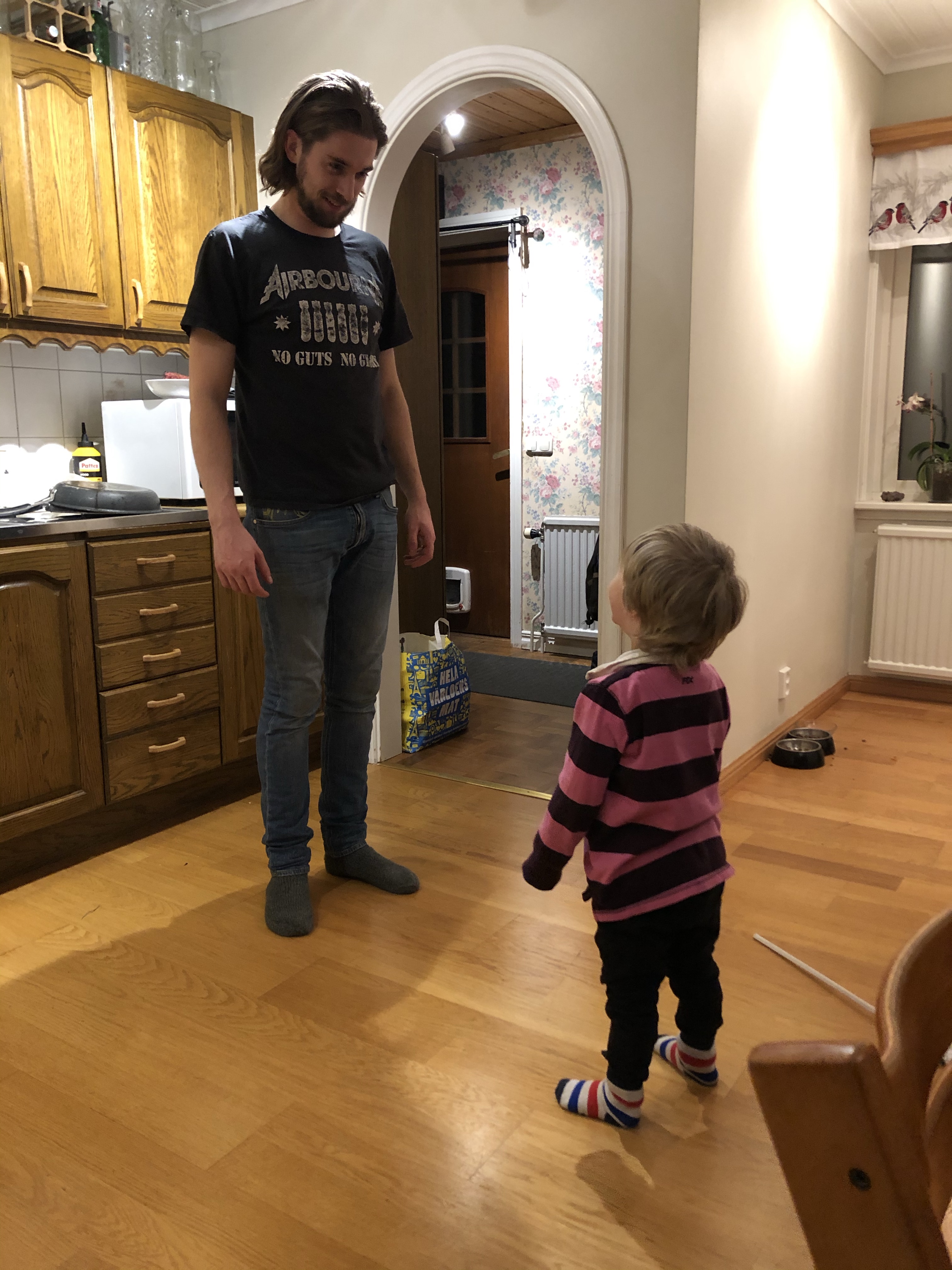 Men det hade nog gått fint, men vi sparar det till en annan dag helt enkelt. Nora sov och sov så jag och Loke var ute hela eftermiddagen och smågrejade lite överallt. Först halv fyra gick vi in och då vaknade Nora också. Så lagade vi mat och Axel kom en timme senare, tidig idag!