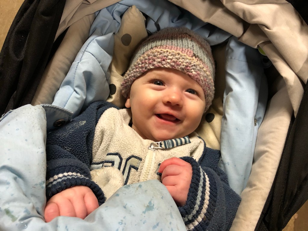 Den här veckan har Loke plötsligt börjat vakna tidigare, innan har han ju gärna sovit till halv åtta-åtta under en lång period. I morse vaknade båda barnen och var pigga och glada klockan sex.. Jättekul! En dryg halvtimme lyckades jag hålla kvar dem i sängen men sen var det lika bra att gå upp. Axel åkte iväg på rävjakt men jag hade ju sällskap av delar av hans familj i alla fall. På förmiddagen blev det en runda med Nasse och vagnen.