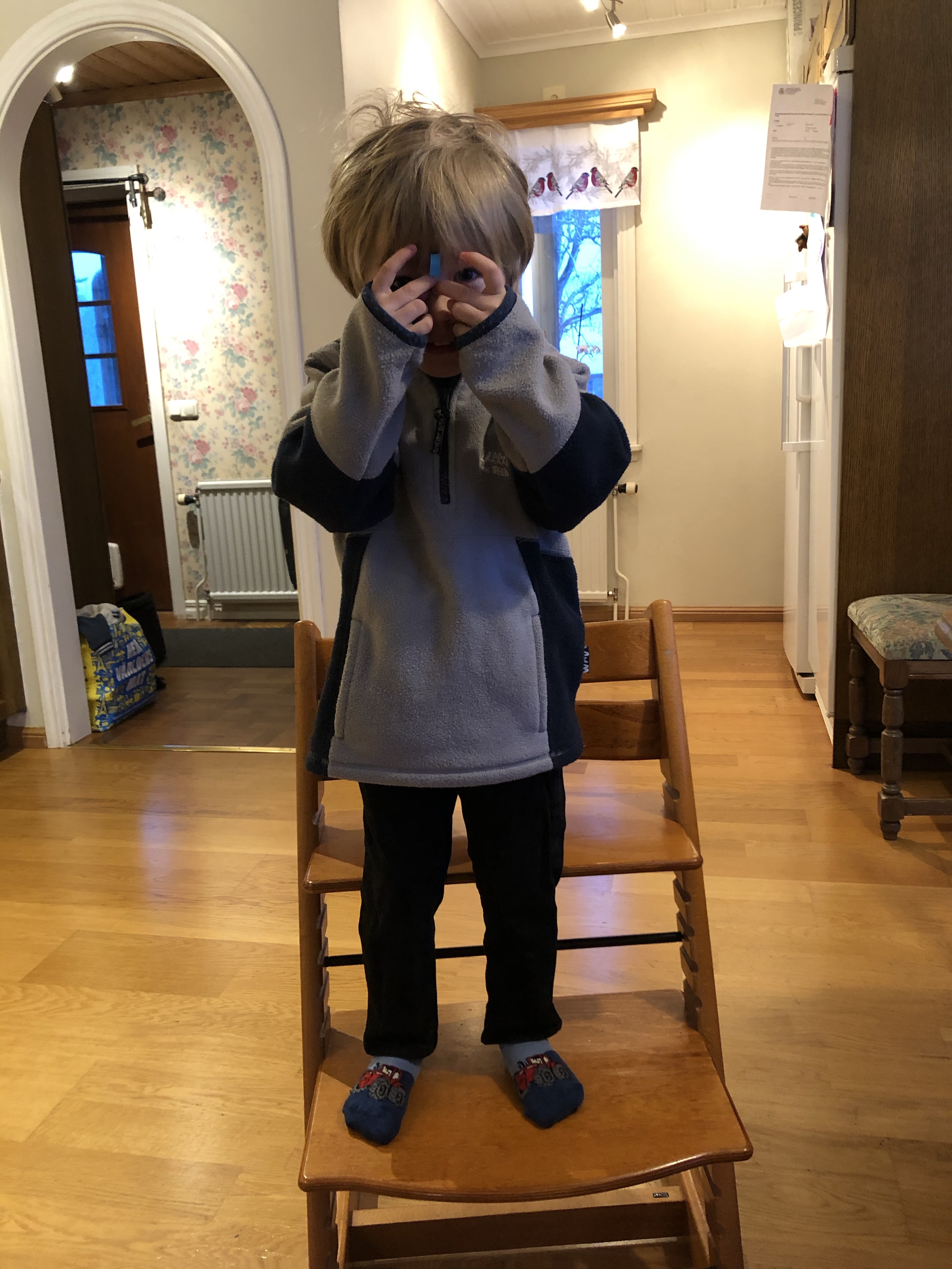 Vid ett hämtade jag Loke på förskolan och jag gick som vanligt mot ”älgrummet” för att hämta en sovande Loke. Men jag blev stoppad av en av pedagogerna som då pekade bakom mig, och där satt ju Loke och pusslade! Han hade inte somnat idag för ovanlighetens skull, utan hade legat och småpratat med en kompis. Så gulligt!