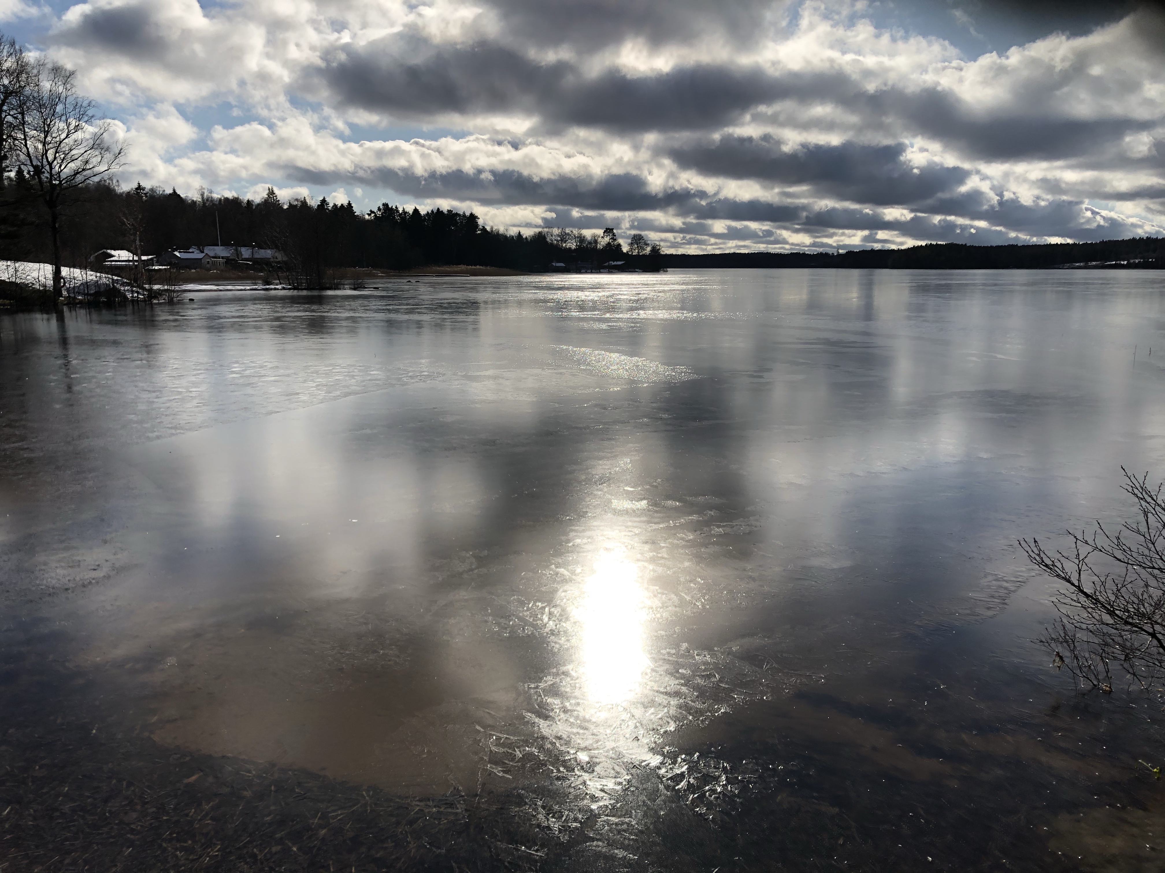 En extra fördel med besöket för mamman i familjen är att det blev ridning i dagsljus på en vardag! Så här vackert var det nere vid Ornungasjön strax efter lunchtid.