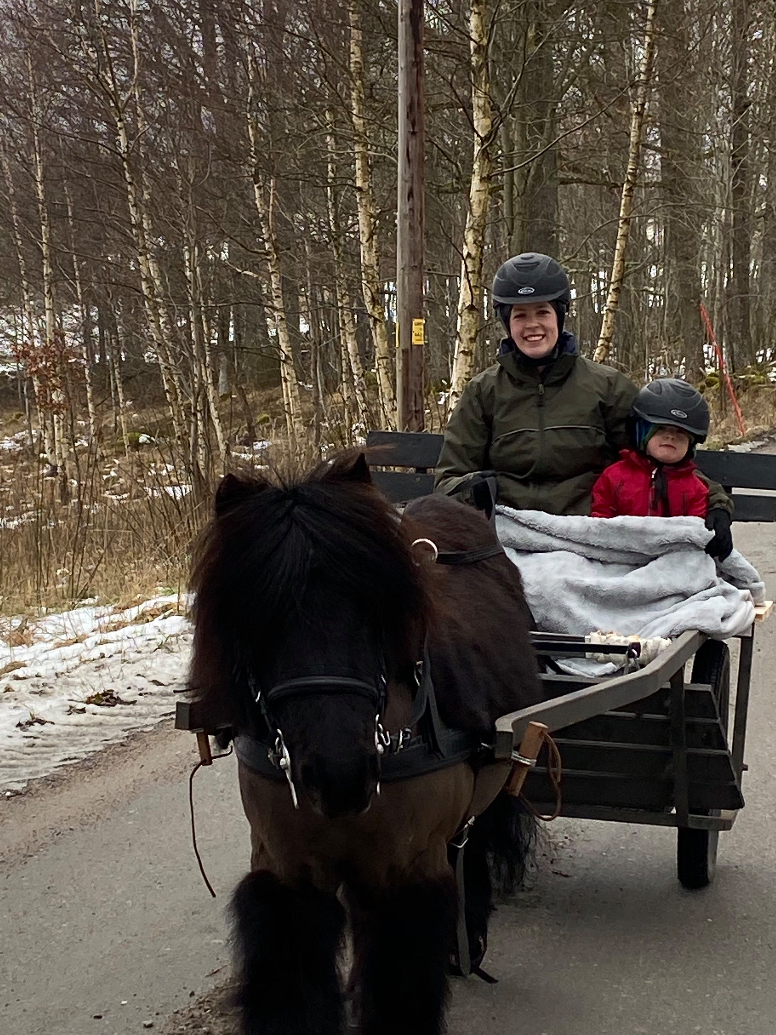 Loke tyckte dock att det skumpade för mycket där så då ville han rida tillbaka till stallet i stället. Och det fick han såklart. Så då red han lite och sen åkte han lite mer pulka på ridbanan.