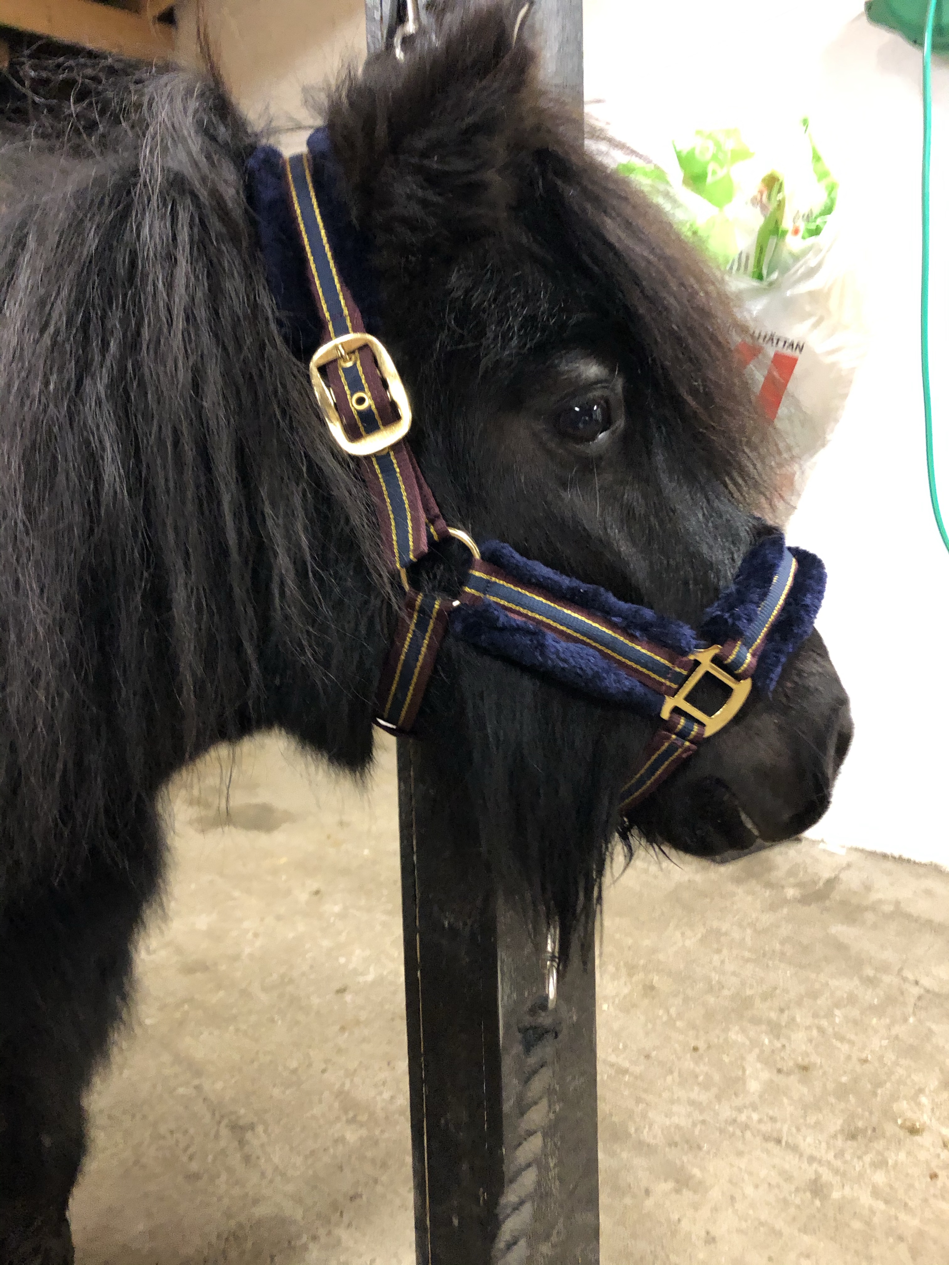En lång väntan men på eftermiddagen anlände den svarta sötnosen. Efter en stund i egen hage intill de andra fick han gå in och han kunde inte ägnat mindre uppmärksamhet åt de stora hästarna. Det blev inte ens nåt spring. De bossar lite över honom och lite rörigt blir det ju alltid med nya hästar, men det kommer allt bli bra!