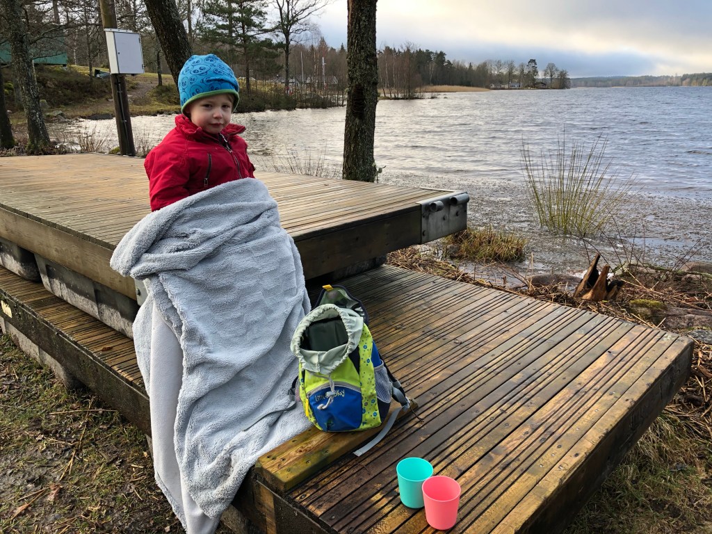 Ända ner till badplatsen tog vi oss! Där pausade vi och dukade upp med fikan vi hade med oss.