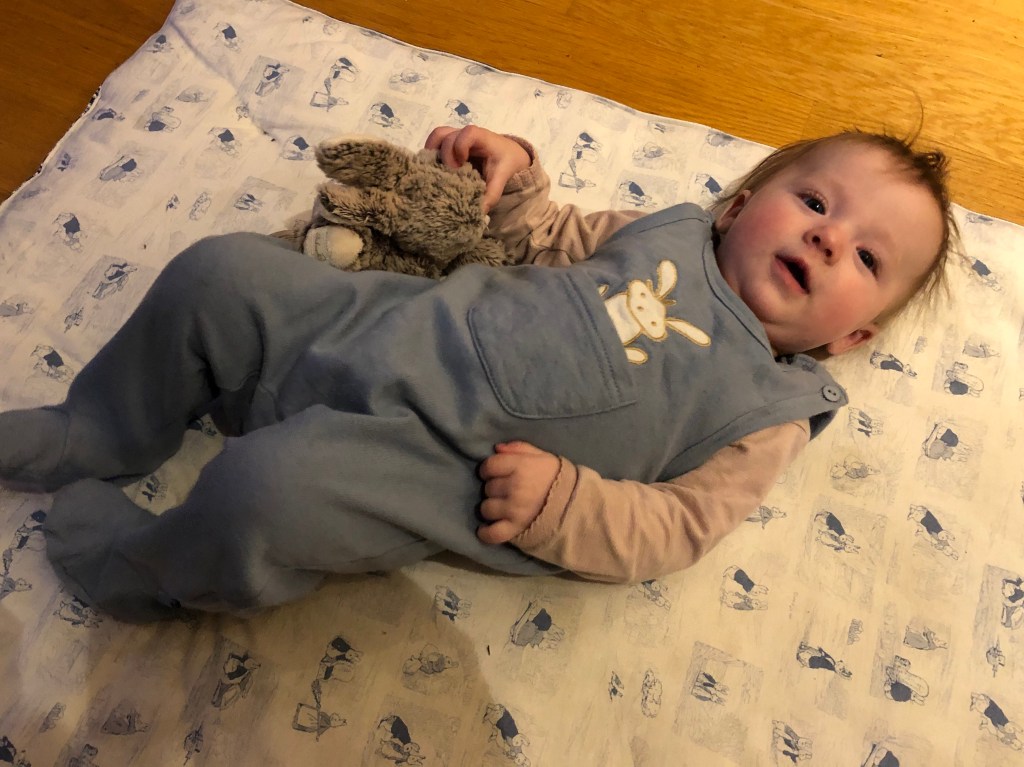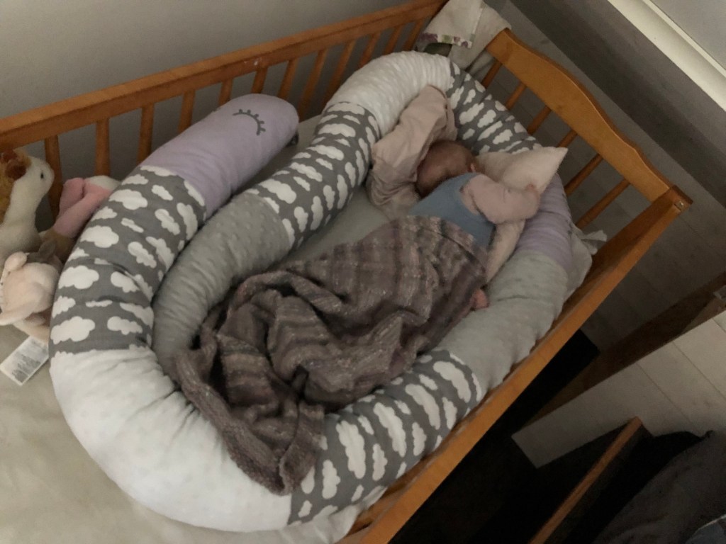 Efter lunch packade vi bilen full med skräp från ladan som jag rensade ut häromdagen och så körde vi till tippen. Loke behövde sova middag så jag tänkte att han skulle somna på vägen hem, men han somnade redan innan tippen. Lite synd att han missade det, men han var riktigt trött idag. Även Nora sov i bilen, och lite senare under dagen sov hon i sin säng. Igår blev hon uppgraderad från nestet till bara spjälsängen då hon vid ett par tillfällen lyckades rulla ur nestet och ur spjälsängen (som hade öppen sida) och över sovormen och över till vår säng alldeles intill. Jag har nu då höjt upp kanten på spjälsängen och insåg att hon ju inte behöver nestet längre, kudde och sovorm så är det mysigt och fint! Kudde är viktigast så hon har något att trycka in huvudet i.