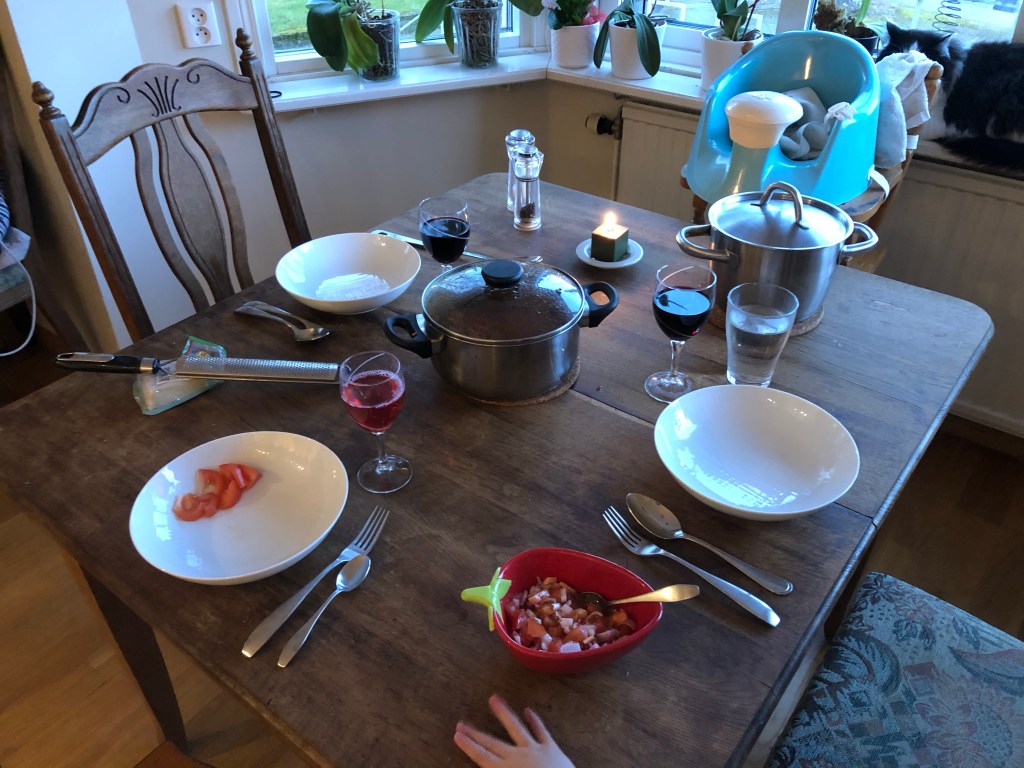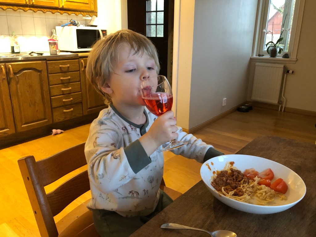 Till middag idag blev det spaghetti och köttfärssås. För första gången denna vecka joinade Axel till middagen så lite extra fint fick det bli.
