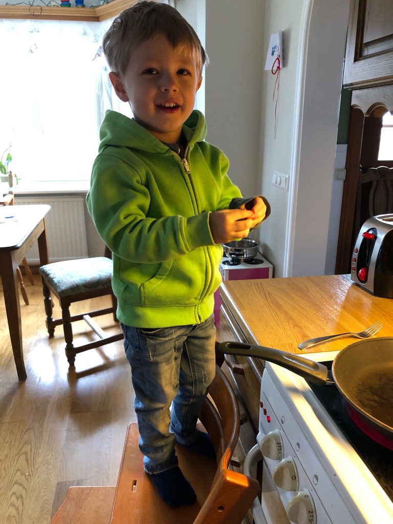 Vid Lokes ålder ska man gärna kunna sätta ihop två ord till meningar, och det är ju ganska länge sen Loke var där. Härommorgonen fnissade vi lite åt Loke som hämtade kalsonger till Axel och sa ”Här jag har hämtat kalsonger till dig, nu kan du sätta på dem”. Nu var han lite blyg inne hos Monica men han kom snart igång och pratade lite i alla fall!