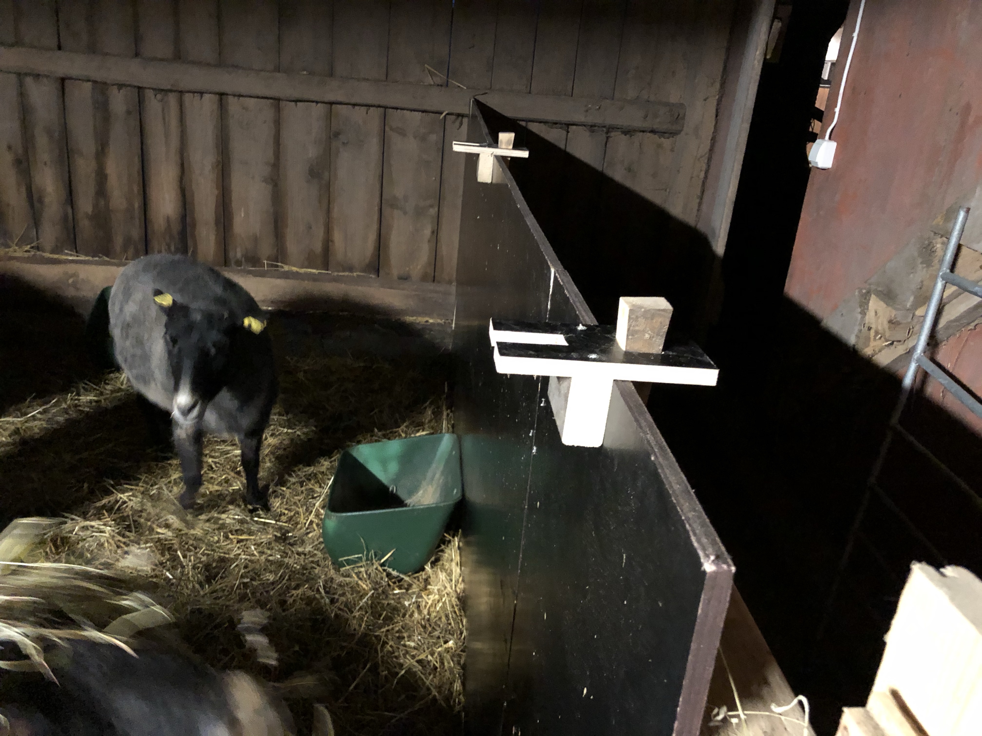 Skönt nog är Axel redan så gott som frisk, men gårdagens fina ”arbetsväder” fick vi ju inte idag! Men lite har vi fått gjort i alla fall. Hästarna fick en ny höbal och Axel har fixat fästen för fårgrindarna inne hos fåren inför lamningen som närmar sig med stormsteg.