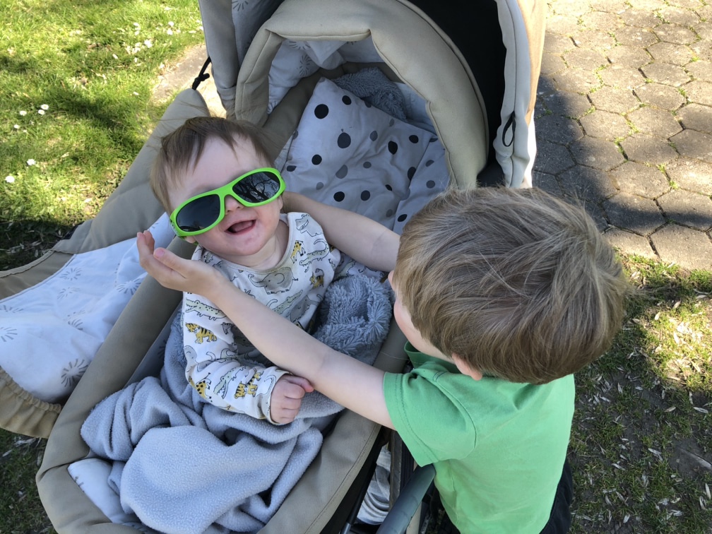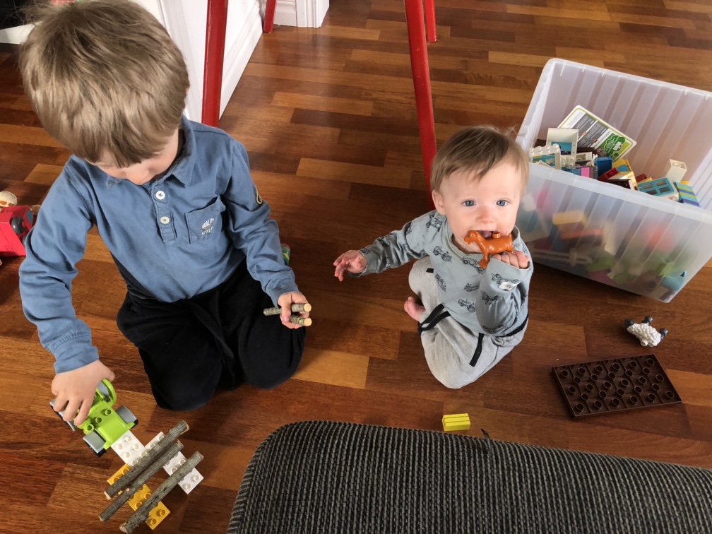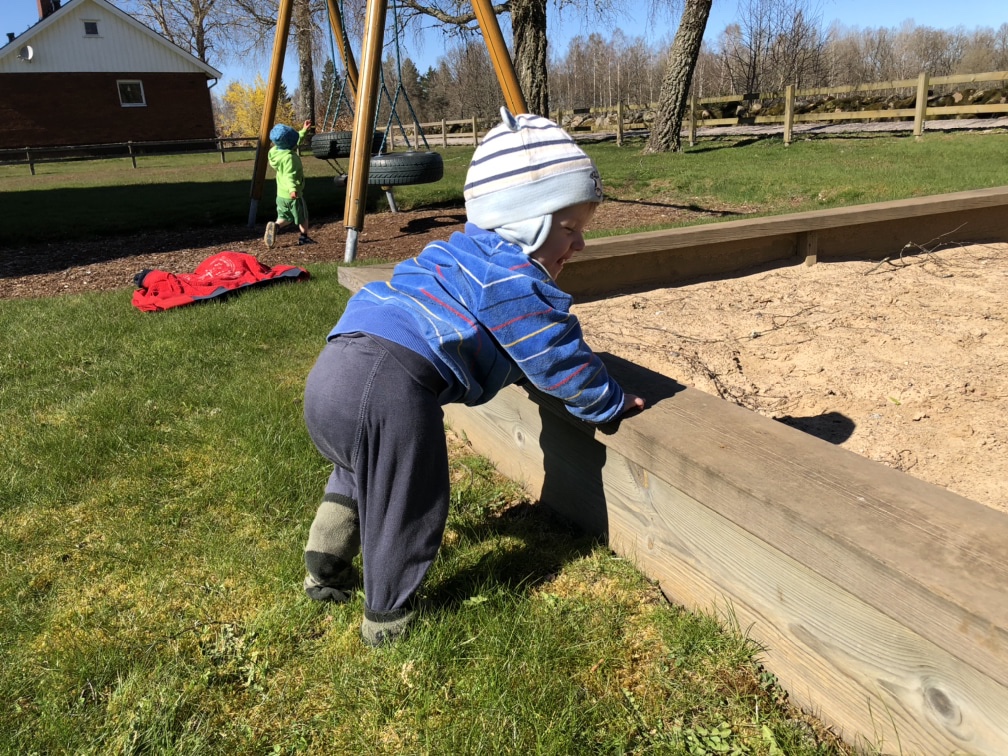 I förmiddags var vi på lekdejt med Thor och Valter som bor ett par hundra meter bort. De är nyss fyllda tre och ett år, på samma årtal som Loke och Nora. Nora somnade gott i vagnen på vägen dit och sov igenom större delen av lekdejten vilket var skönt för det var riktigt rått och blåsigt.