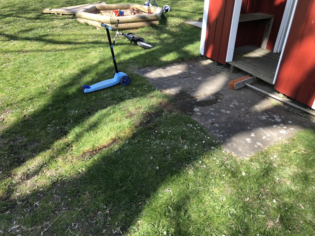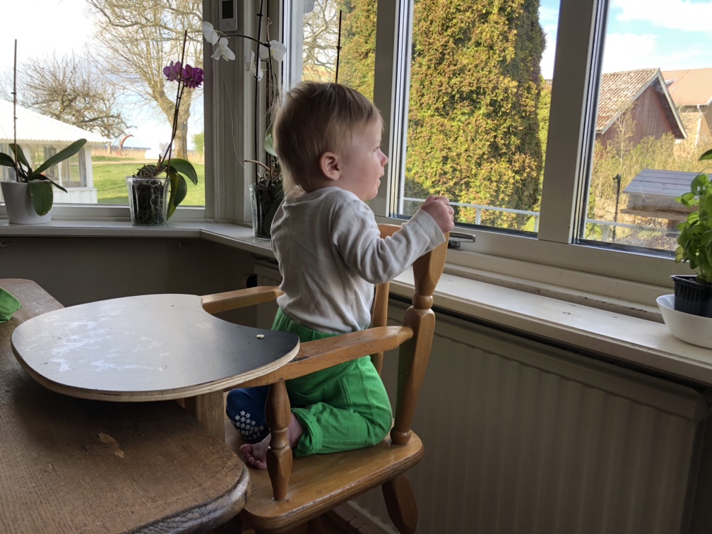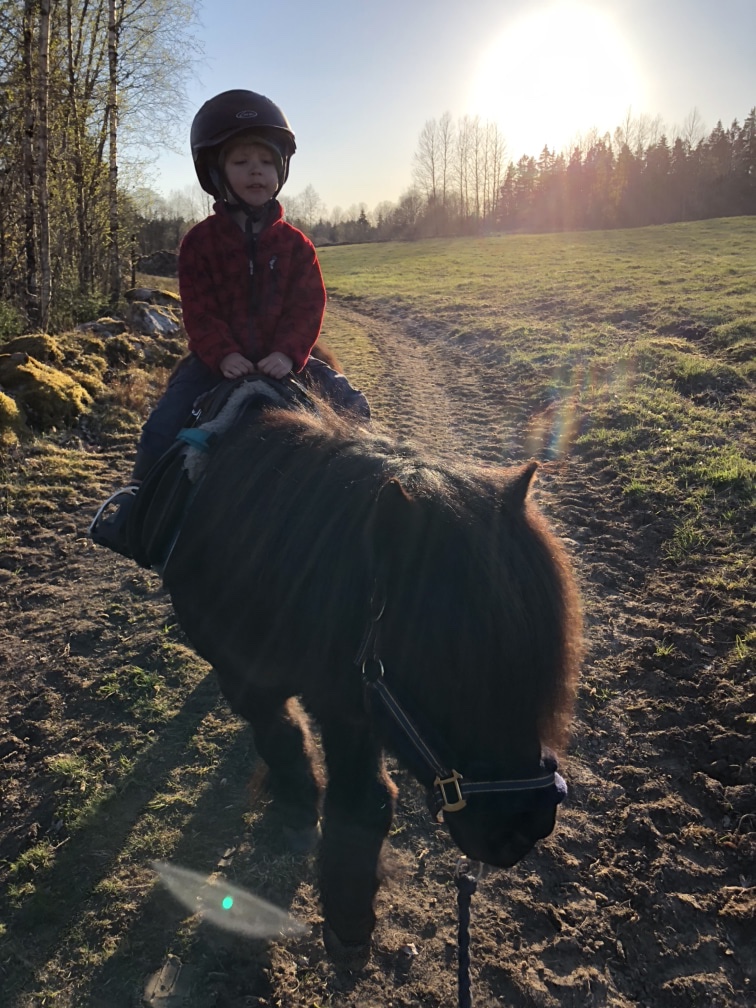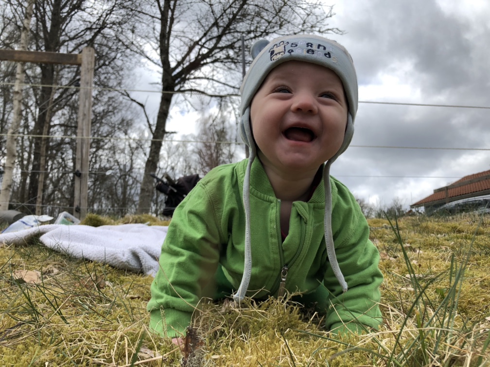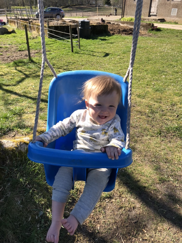 Och sen blev det lite inomhuslek! Loke och Nora leker mer och mer ”tillsammans”, jätteroligt att se verkligen. Och sen blev det lunch och utgång igen. Det blåste lite mindre nu så det var lite behagligare. Nora sov dock nu också, så jag och Loke gungade och mockade massa bajs. Borde sätta en motor på den här traktorn nu så vi får lite mer användning av barnet! Svårt och trögt att trampa i hagen…