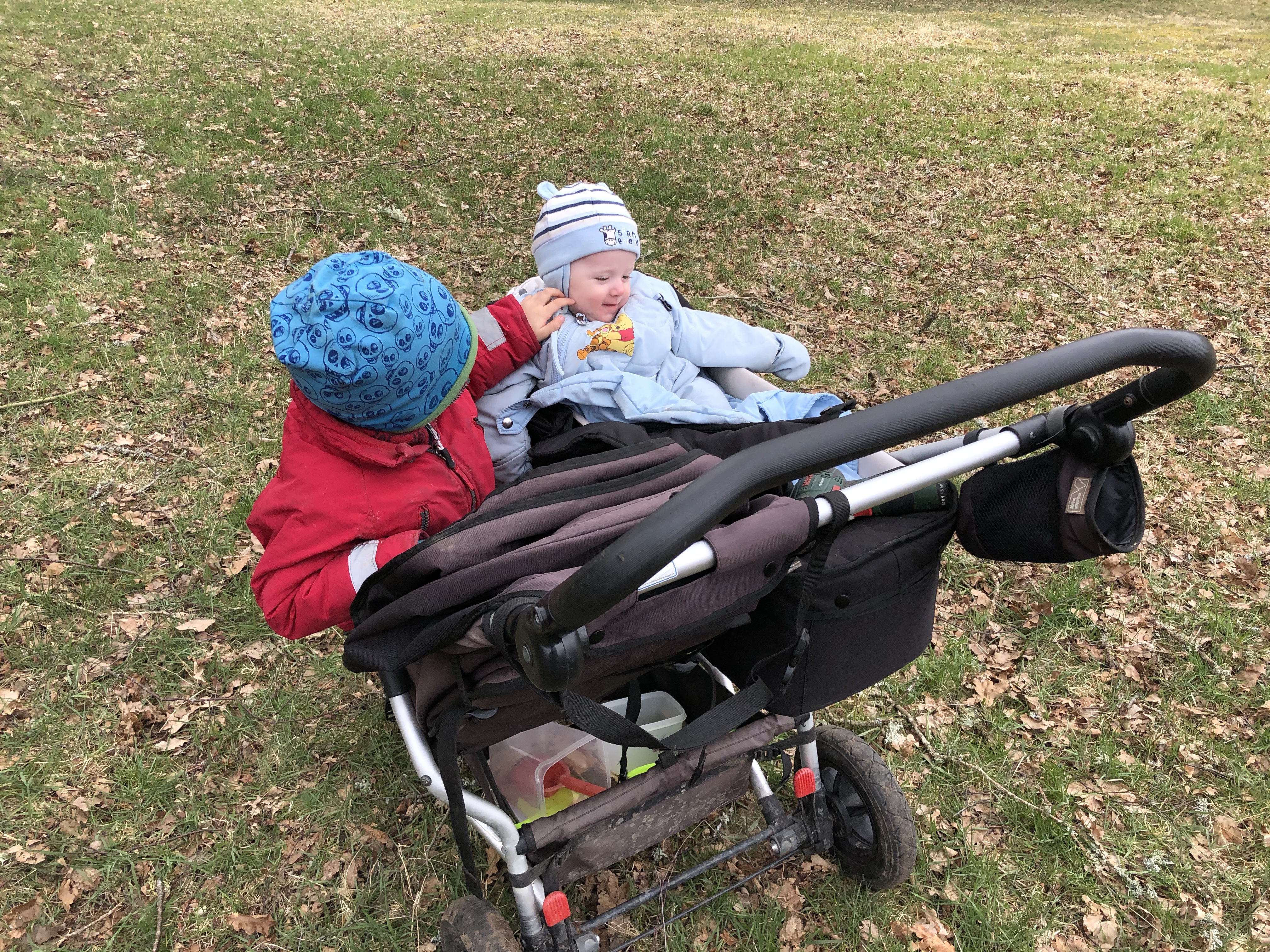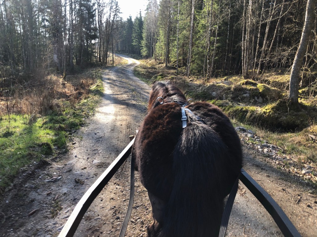 Våren tågar in med stora steg, idag hade vi tio grader och bara lite vind, fantastiskt! Jag och barnen inledde dagen med ponny och vagn. Nora sov i vagn-insatsen nerknödd på golvet i vagnen och jag och Loke satt på sitsen, såklart. En runda på fyra kilometer blev det även idag och Assim fick trava på en del.