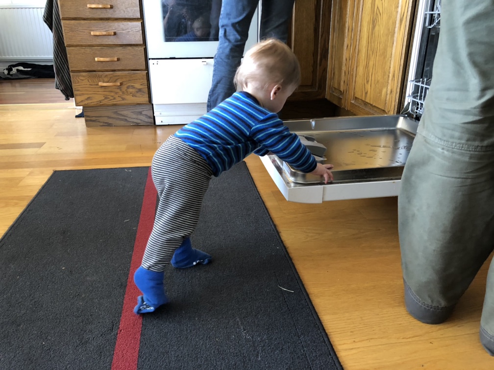 Till middag hade Loke beställt mos och biff, så det flck det bli. Och sen gick jag och Loke och duschade och Axel tog hand om Nora, vilket ledde till att trappgrinden som vi haft på nedervåningen åkte fram.