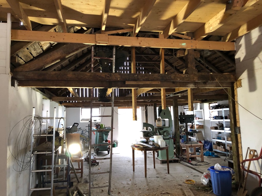 Axel spikade lite reglar mellan stallet och verkstan, vägg på gång nu!