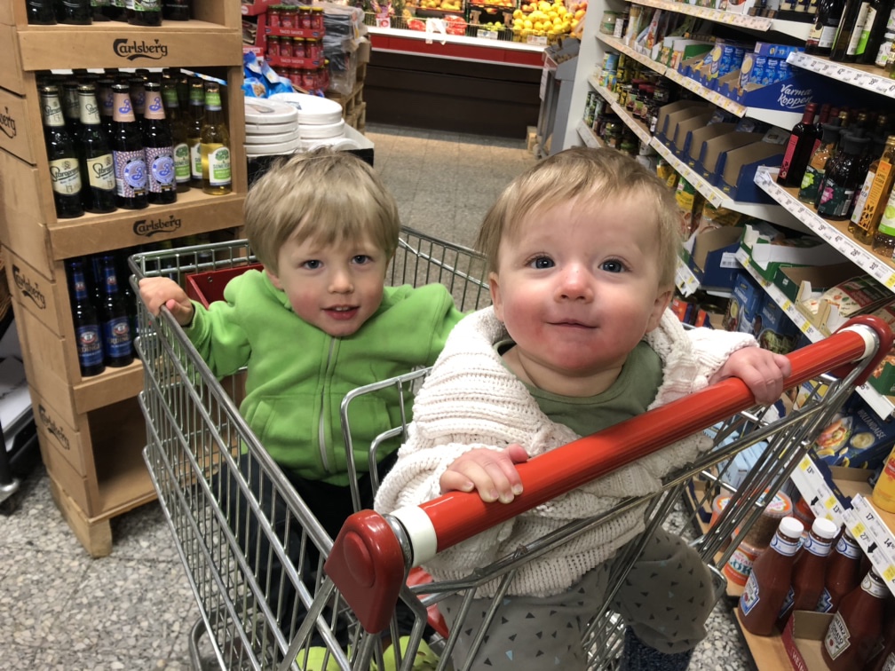 Och så handlade vi mat också. Jag fick två söta barn i kundvagnen så Axel fick ta en korg för att maten skulle få plats. Hehe. Noras premiär i kundvagnen utan bilstolen!