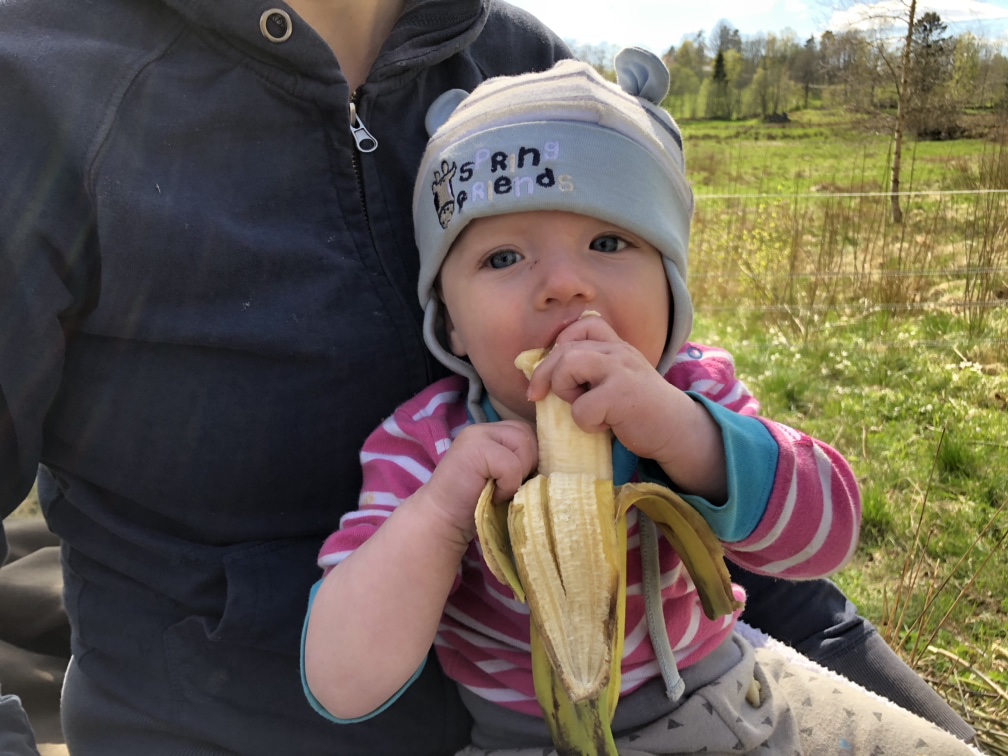 Picknick i gräset hade vi också, med äpple, banan och sockerkaka.