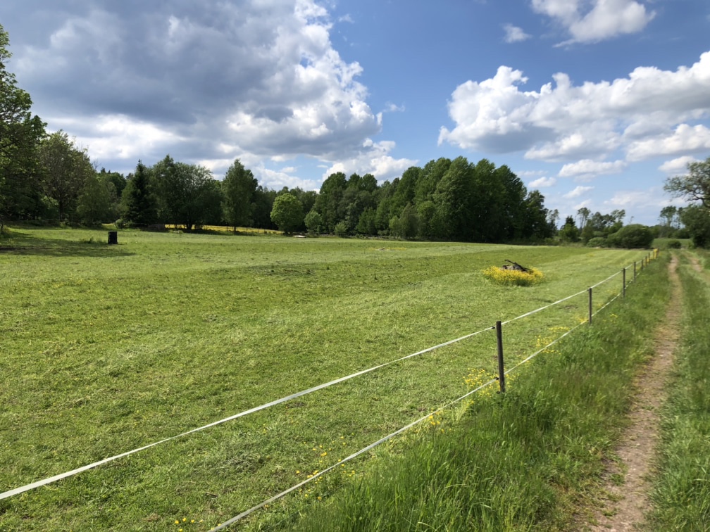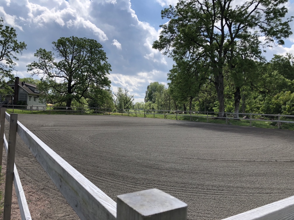 Det började lite regnigt i morse när vi åt frukost men den klarnade det allt upp och blev fint väder. Härligt! Vi gick då ut och satte igång med gårdsgöra. Harvning av paddock!