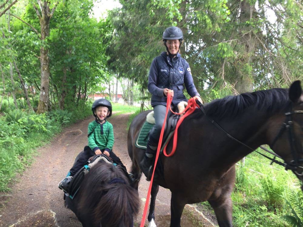 När Axel kom tillbaka ville Loke också rida så de gjorde Assim klar och så fick de hänga på när jag skrittade av Kaprifol. Jag testade att hålla Loke i lång lina idag och det gick bra, skulle nästan våga ge mig ut en runda själv med honom nu faktiskt.