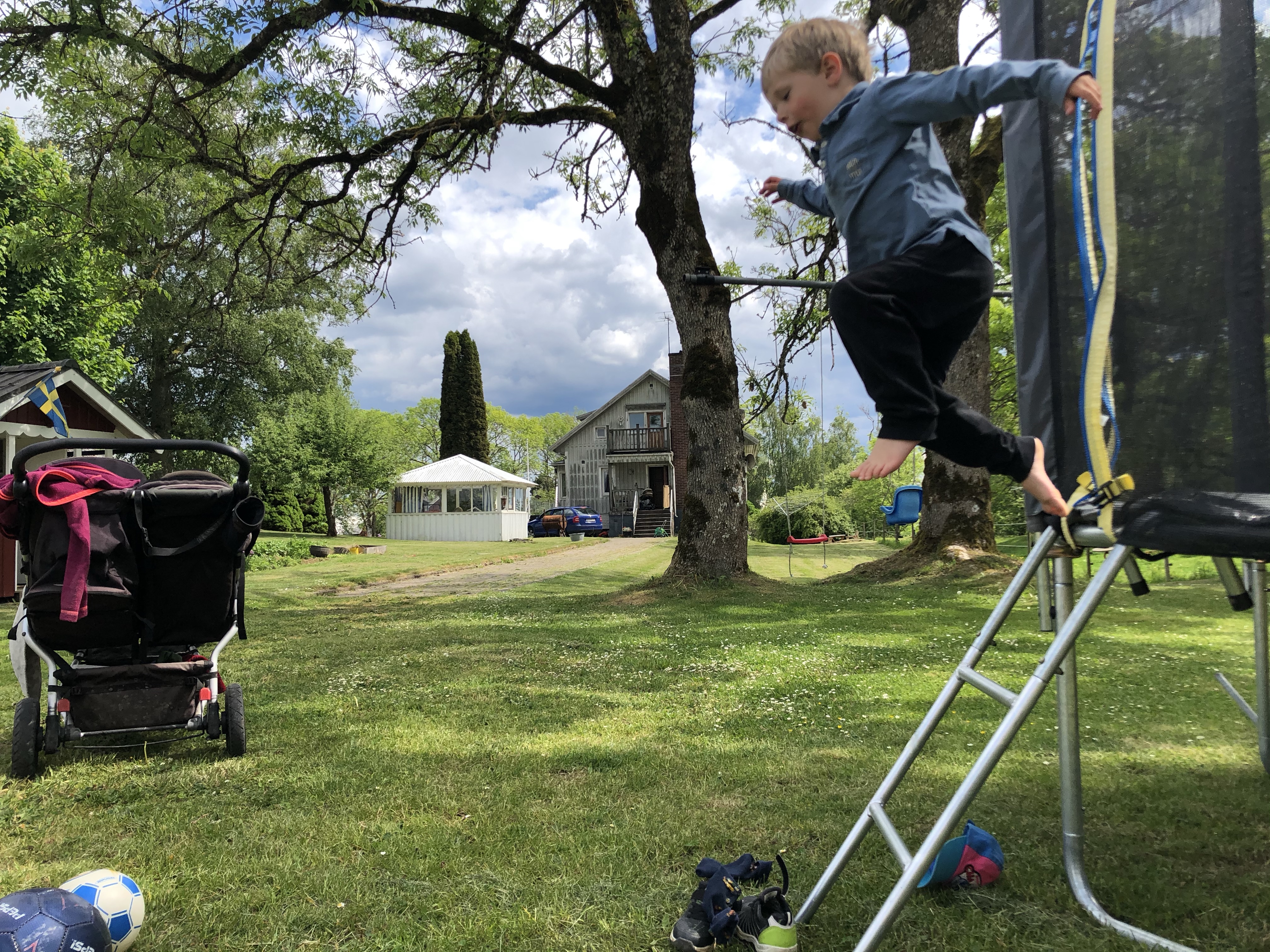Loke var på dåligt humör efter förskolan (blir så när han sovit middag) så jag drog iväg honom, Nora och Kaprifol på en promenad via sjön. Tre flugorna en smäll; Nora somnade, Kaprifol fick röra på sig och Loke tinade upp. Så när vi kom hem kunde vi leka lite ute.