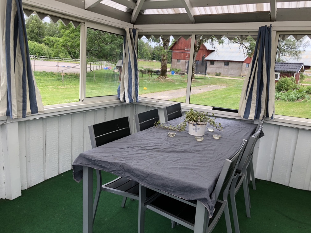 Förmiddagens ”lediga tid” (= Loke på förskolan, Nora sover) gick åt till att städa klart i lusthuset. Det blev ju dammsuget igår och gardinerna togs mer för tvätt, så idag blev det diskmedel och vatten. Ja ni hör, rent på riktigt alltså! Vi missköter ju detta lilla lusthus rätt bra och använder det mest som parkering för cyklar och barnvagnar, men så här års är det väl ändå lite kul att kunna sitta där. Men då kan det ju vara lite renare så att säga. Lite bättre är det efter idag i alla fall.