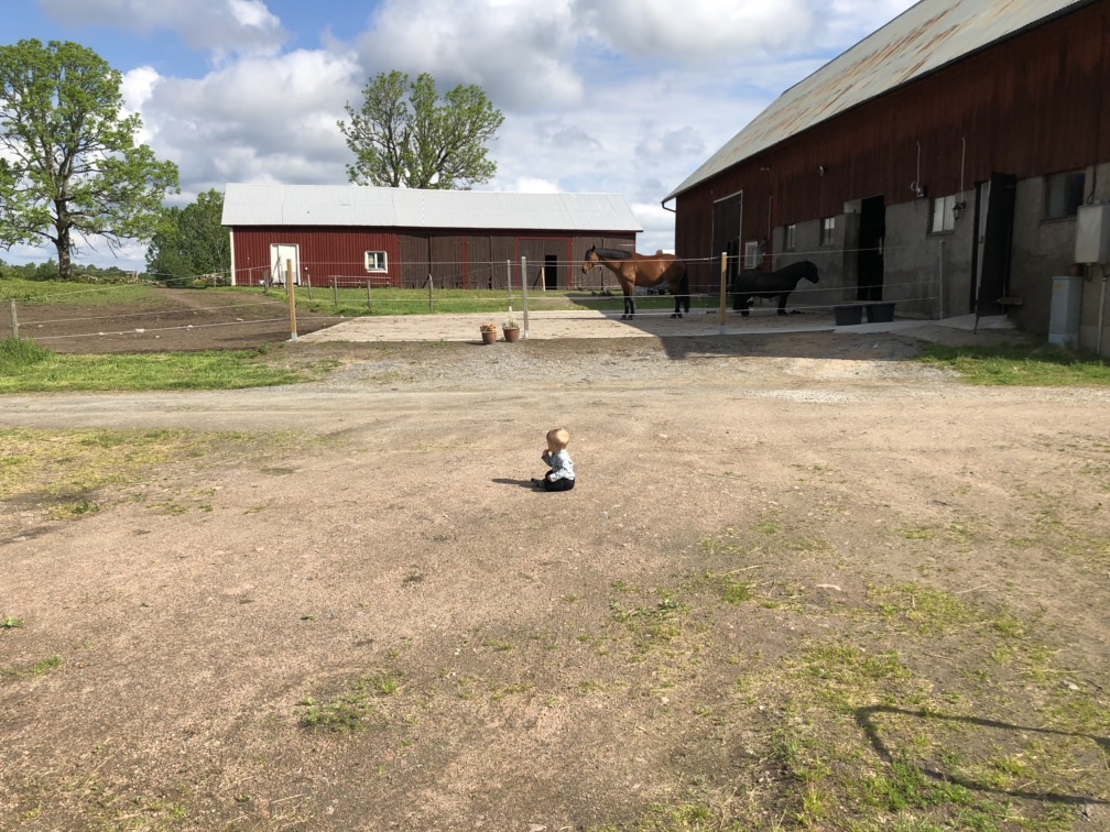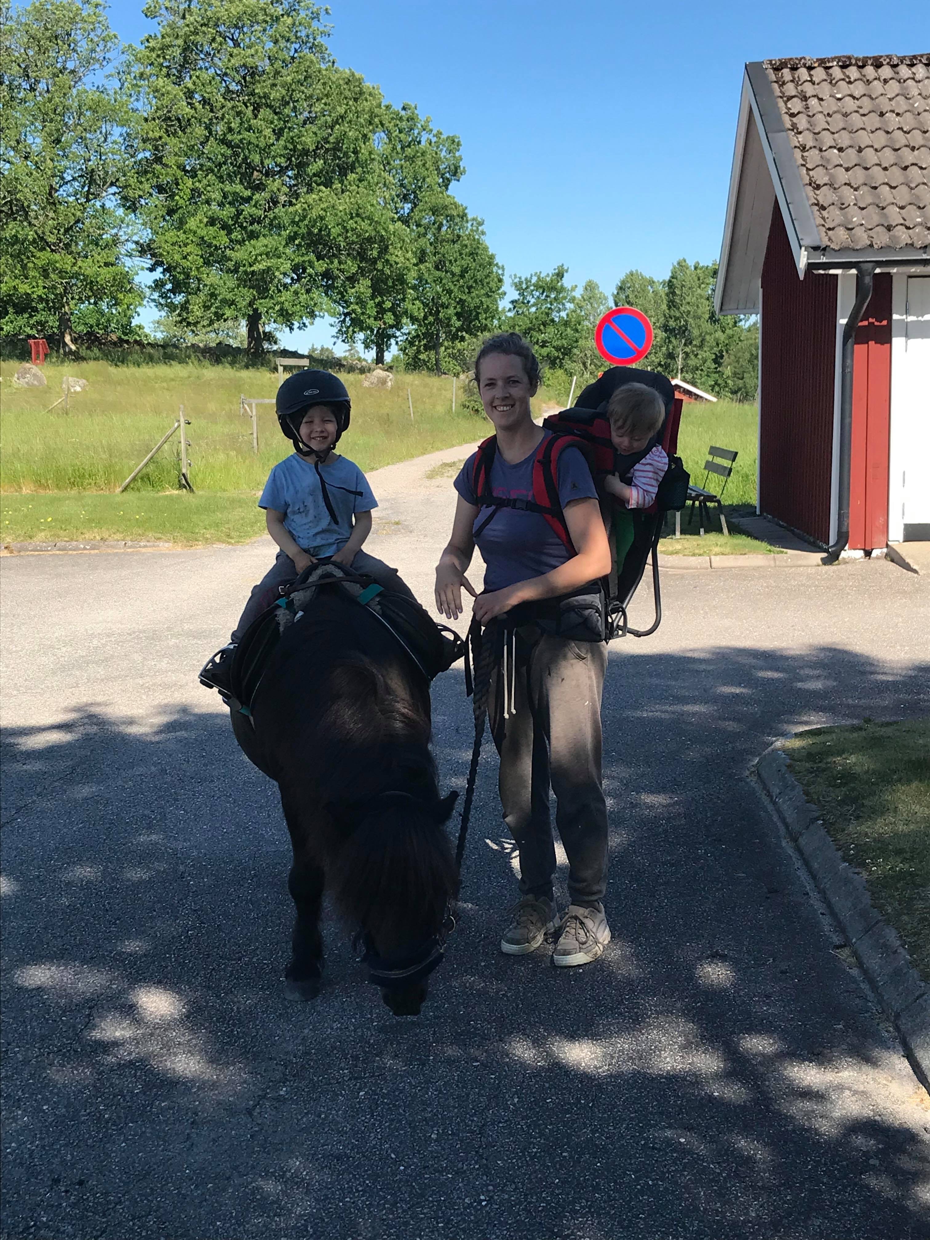 Jag blev precis klar innan Nora ville sova, det tog inte många meters promenad innan Nora sov. Precis när jag parkerade henne vid stallet kom Beatrice också så det tajmade vi bra! ”Träningen” gick bra och Nora vaknade när vi var klara och hindren undanplockade. Inte illa! Då gick vi in och åt lunch och sen var det dags att åka och hämta Loke. Vi hämtade upp honom en timme tidigare än vanligt idag och åkte till Borås med hela familjen för att besiktiga hästsläpet. Det gick halvbra; ett av hjulen bromsade inte alls. Så det får vi kika på!