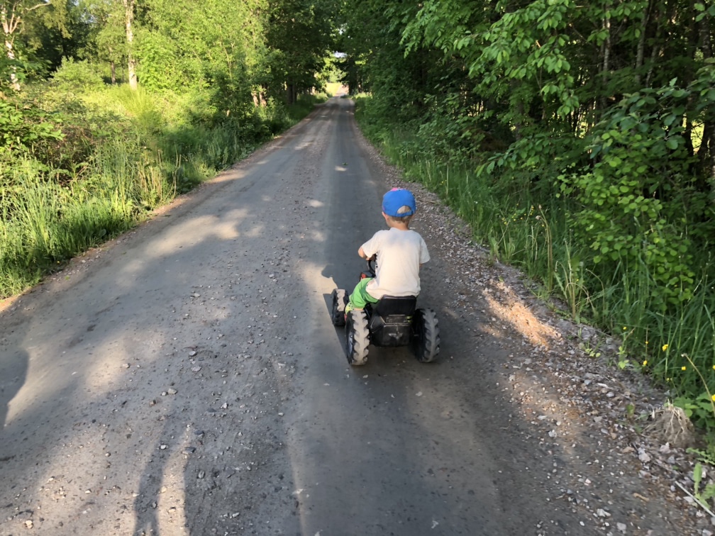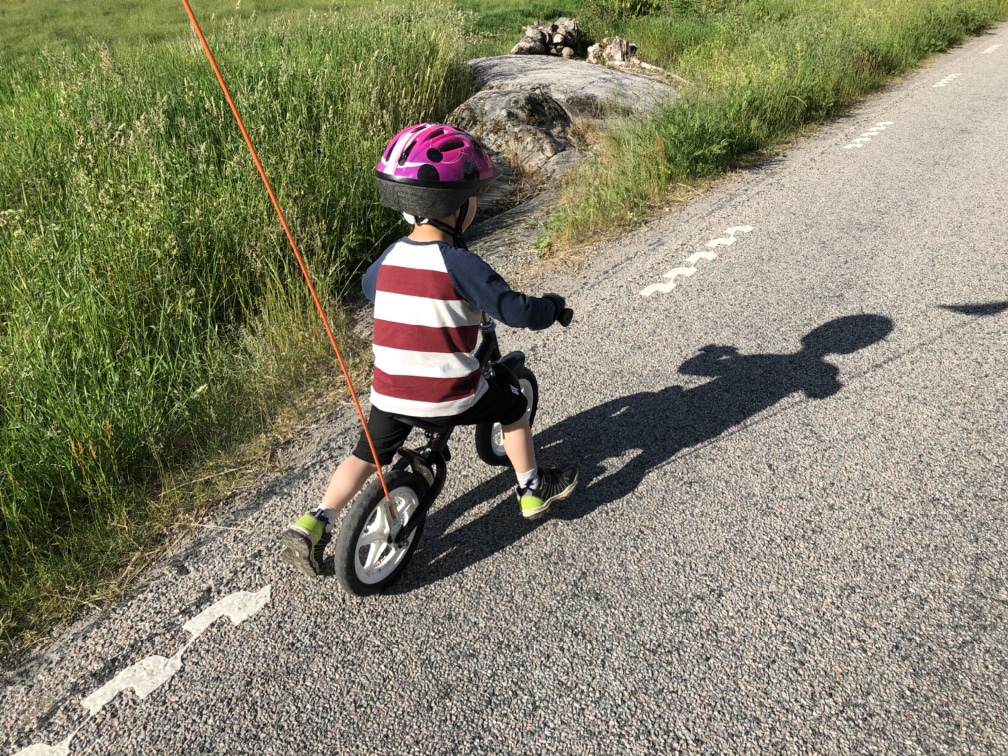 Sen åkte vi hem och båda barnen somnade i bilen av utmattning. Vi lagade då lite mat för att fylla på efter korven, och efter maten cyklade vi hela vägen ner till Gamla Kyrkan på andra sidan vägen och hjälpte till att klä midsommarstången. Det blir inget sedvanligt firande där i år pga Corona, men en stång är ju fint ändå!
