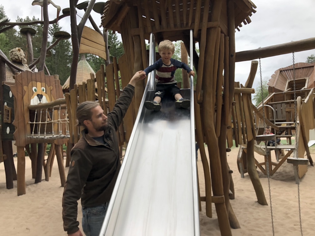 Vi körde lite mindre fokus på djur idag och lite mer fokus på lekplatserna. En korv stoppade vi i oss också när energinivån kändes lite låg.