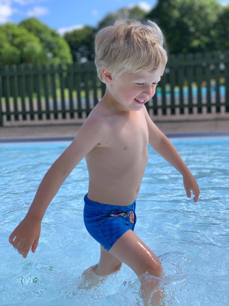 Och så gick vi tvärs över vägen till Flobys utomhusbad, himla lyxigt med detta utanför husknuten! Det blåste kallt så jag bangade badet så Loke fick nöja sig med lilla poolen, men han var nöjd ändå!