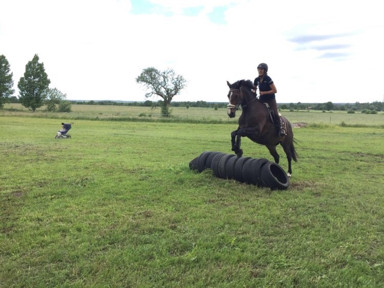 Nyputsad hage och ett nytt hinder, det gjorde ju förmiddagens aktivitet given; hoppning i hagen!