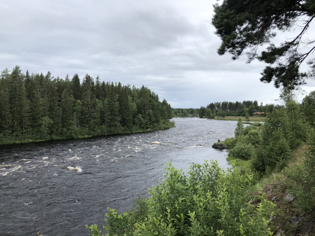 I morse vaknade vi upp till sol och fin utsikt över Limedsforsen! För nej vi körde aldrig till Älvdalen i går kväll, när jag skrev inlägget glömde jag att vi ju ändrat rutten iom att vi körde via Åmål i stället. Så vi körde tills barnen började tröttna på att sova i bilstolarna och stannade på en ställplats här: