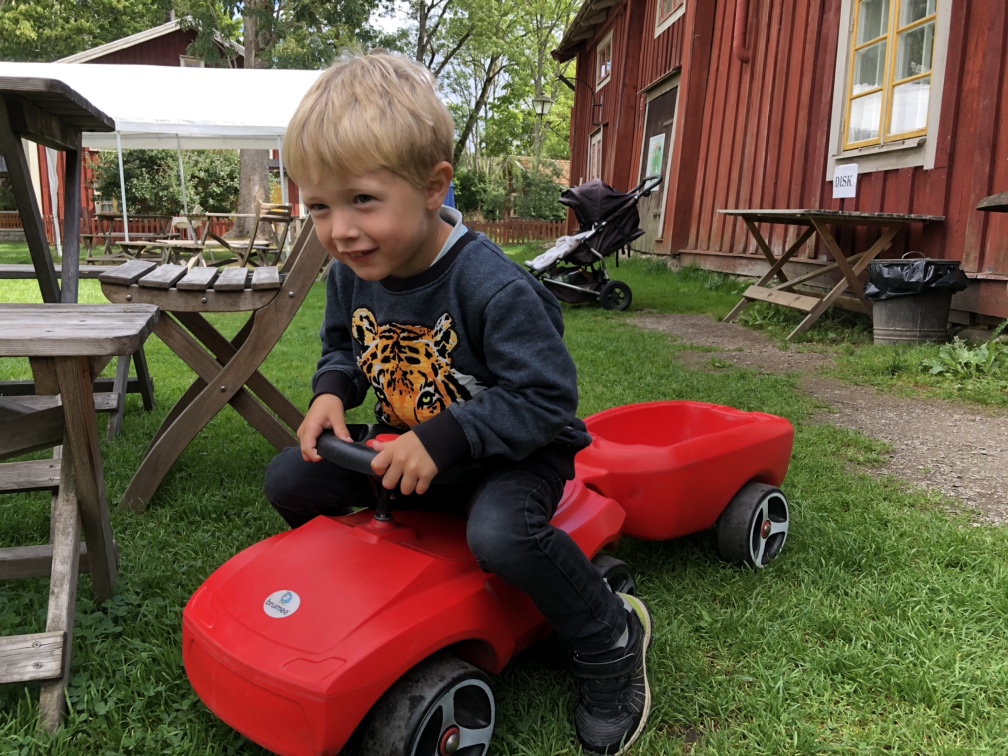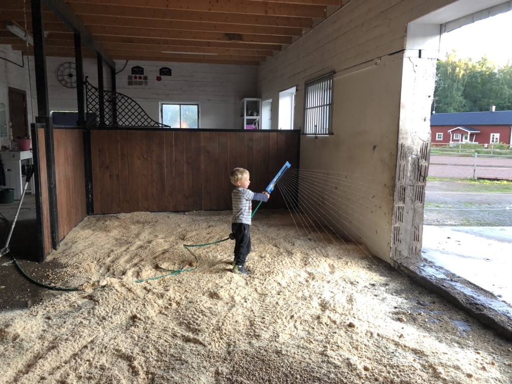 Lite traktorkörning på kvällskvisten, och sen bums i säng för barnen och Axel gick ut på jakt. Han har sett vildsvin två kvällar nu men inte lyckats få skottläge, kanske ikväll?