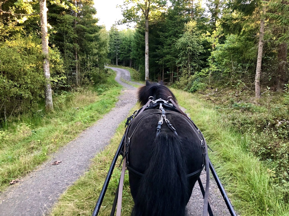 När jag kom hem från jobbet åt vi mat (tuppgryta på lilltuppen) och sen åkte vi en runda med den stora ponnyvagnen. Mysigt!