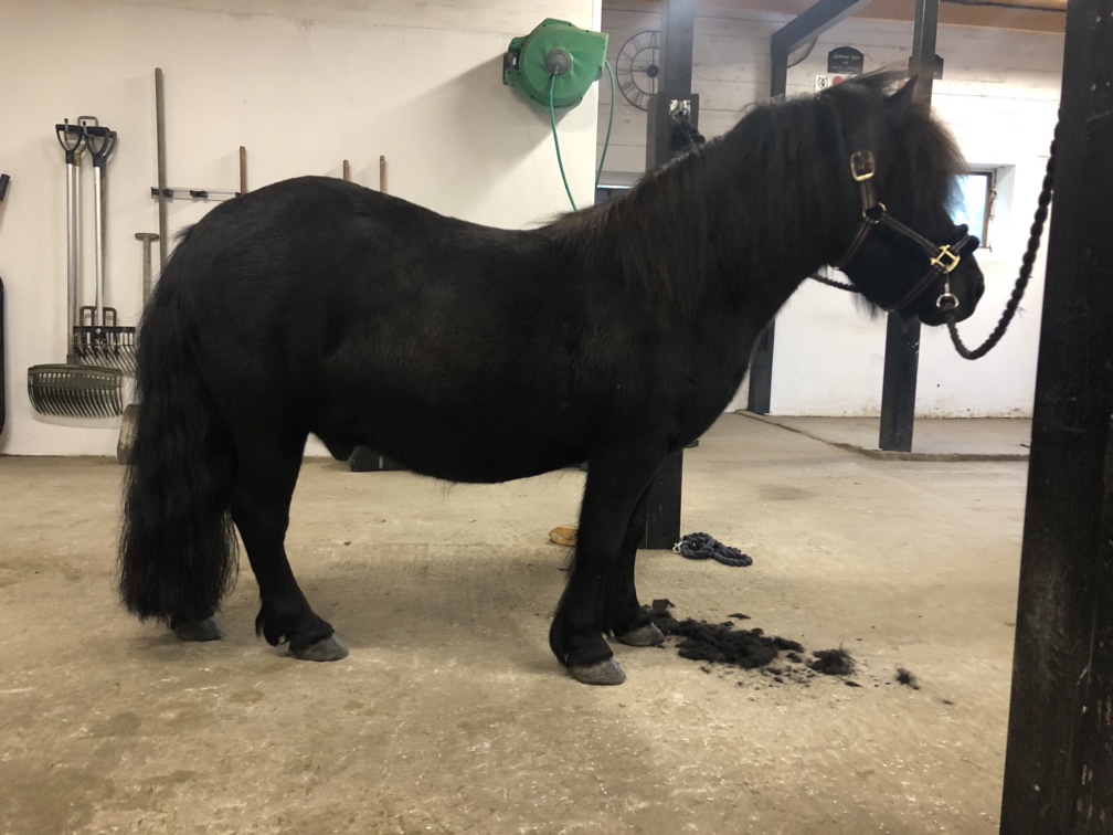 I förrgår bestämde sig Axel för att ta med sig båda barnen till sina föräldrar över torsdagen så när jag kom hem igår efter jobbet var huset helt tomt. Vilken lyx ändå! Jag gick såklart raka vägen ut till stallet och det var Assim som fick följa med in först. Han har redan fått lika mycket vinterpäls som Kaprifol har i november ungefär, så jag tog fram klippmaskinen och släppte in lite luft på halsen och mellan frambenen. Var nog skönt för honom! Här har jag precis börjat klippa honom (syns inte) och inte blev det någon efterbild heller tyvärr. Men det blev ganska bra.