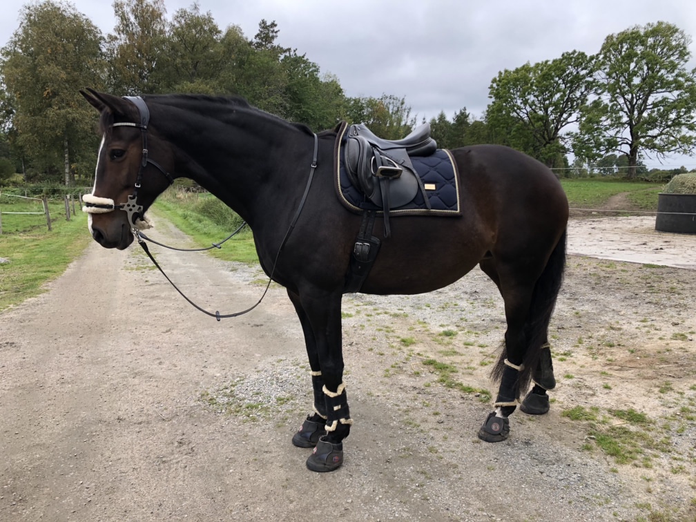 Efter detta fick hästsläpet en storstädning där mattan åkte ut och allt spolades rent. Och så blev det en ridtur med Camilla och Strumpan. Kaprifol tyckte släpets matta var lite konstig där den låg på marken…