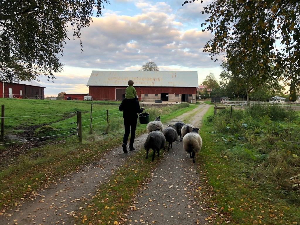 Igår fick vi in riktigt mycket på agendan! Jag kom hem i bra tid och vi åt mat direkt och båda barnen stoppade i sig maten rätt bra så det tog inte hela kvällen det heller. Därav kunde vi gå ut efter maten och greja lite; jag fick ridbanan snabb-harvad inför dagens träning och vi stoppade in fåren i sitt hus inför torsdagens klippning. De verkade veta precis var de skulle nånstans, de sprang typ i förväg och in i sin hage.