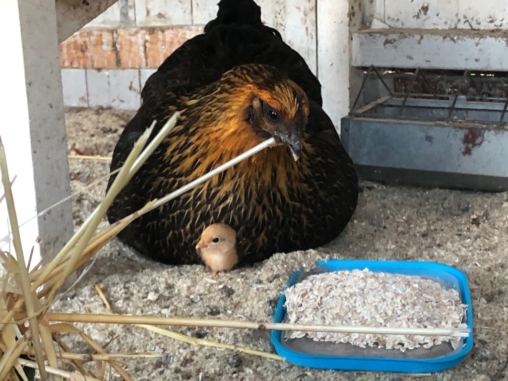 McNugget med sina sjulingar sprätte runt för fullt och kom glatt och åt lite havregryn jag kastade till dem. Fjädrarna håller på att växa ut, alltid lika spännande att se vad det blir för färg på dem. Håller tummarna hårt att den svarta är en höna!