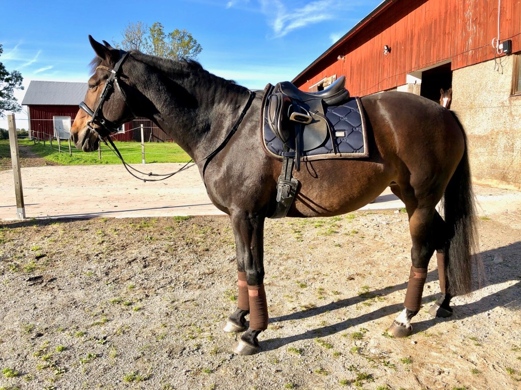 Träningen gick bra! Väldigt stor skillnad att rida träning på hemmaplan jämfört med nere i ridhuset faktiskt, och jag är väldigt nöjd med att våra vardagliga problem ”kom fram” tydligt så jag kunde få hjälp med det. Fick ett par ”aha-upplevelser” som jag ska försöka fortsätta jobba på. Roligt roligt! Och jobbigt, träningsvärk idag!